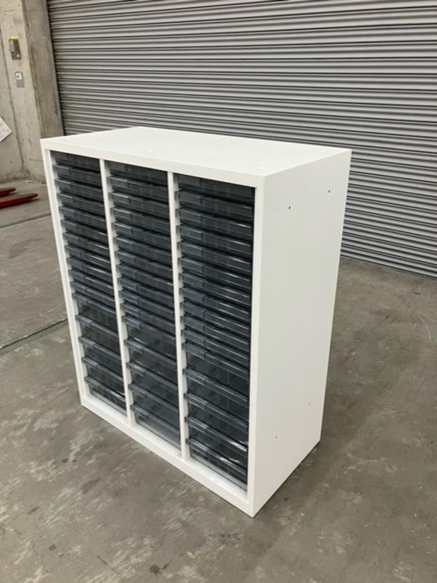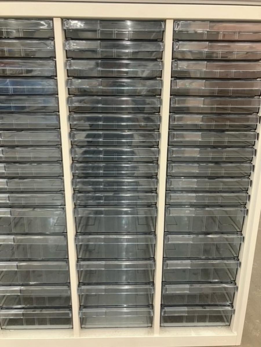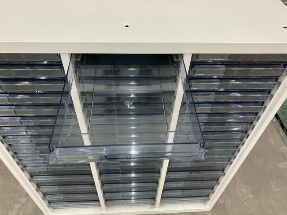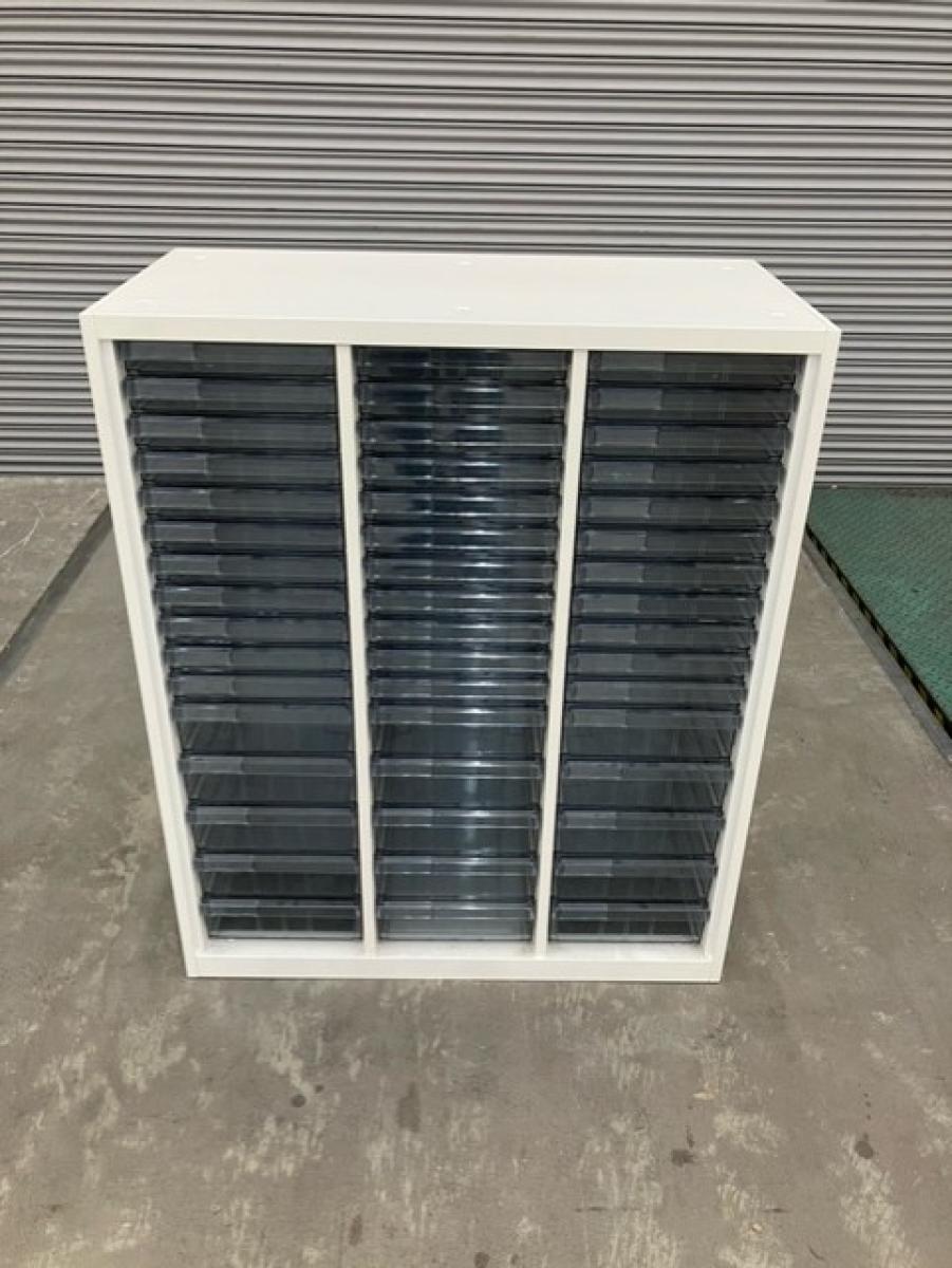【希少なクリスタルキャビネット!細かい書類整理の仕分けに!】■オカムラ製 クリスタルトレー 浅型(A4)11・深型(A4)5×3列- マテハン本舗