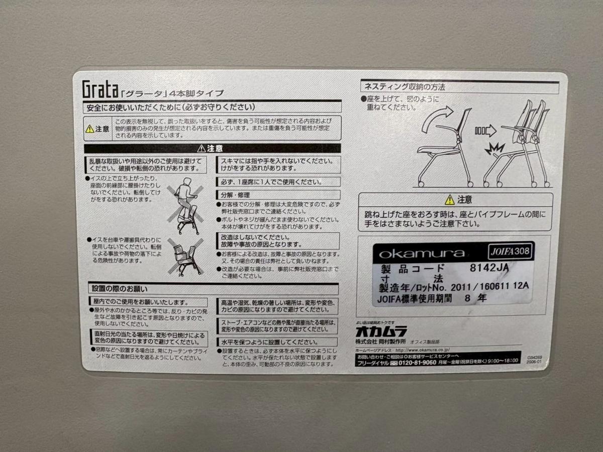 【中古】 グラータチェア 8142GR オカムラ/okamura ネスティングチェア 545192