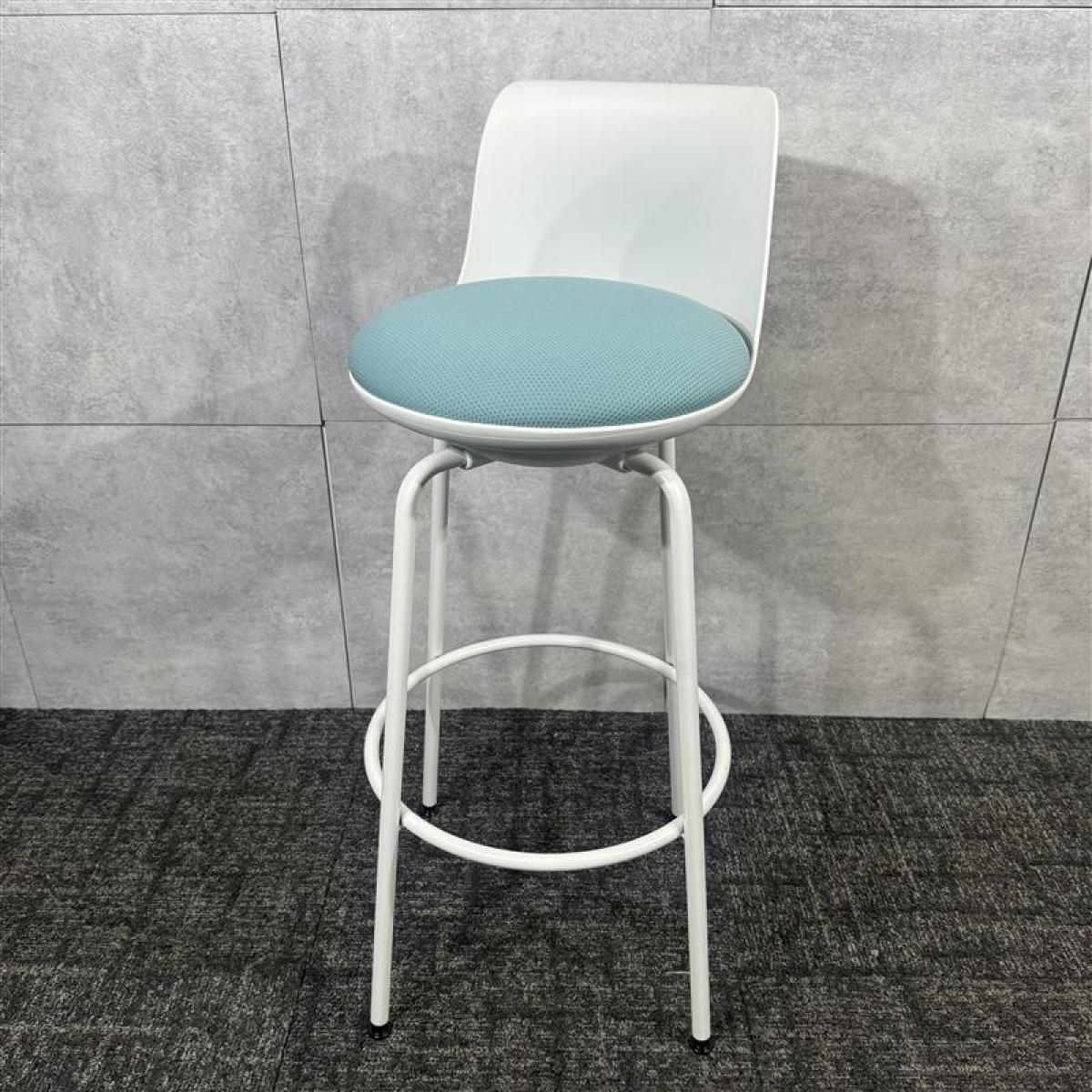 【1脚のみ入荷!ハイテーブルやハイカウンターに合わせやすい★】オカムラ ピルエット ハイチェア ライトブルー 《オフィスバスターズ福岡博多店は、福岡を拠点として、日本全国へ中古オフィス用品・オフィス家具を提供しております》- 福岡博多店