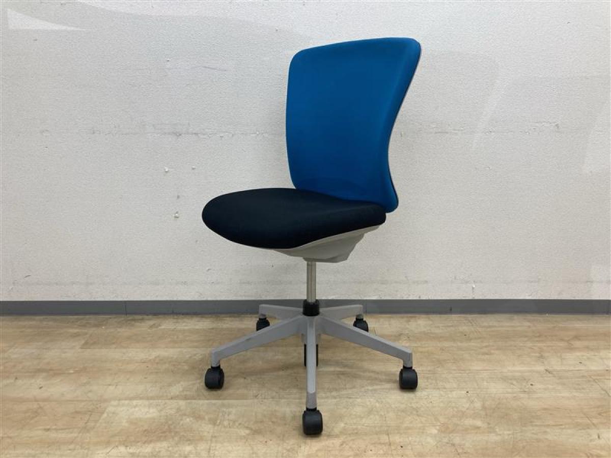 【座面使用感の汚れあり】イナバ製 バルチェシリーズ ブルー×ブラック セルフアジャストメント機構採用であらゆるワークシーンにフィット! スタンダードなデザインで座りやすい 肘無しハイバックチェア!!中古 肘無し ブルー 【K】