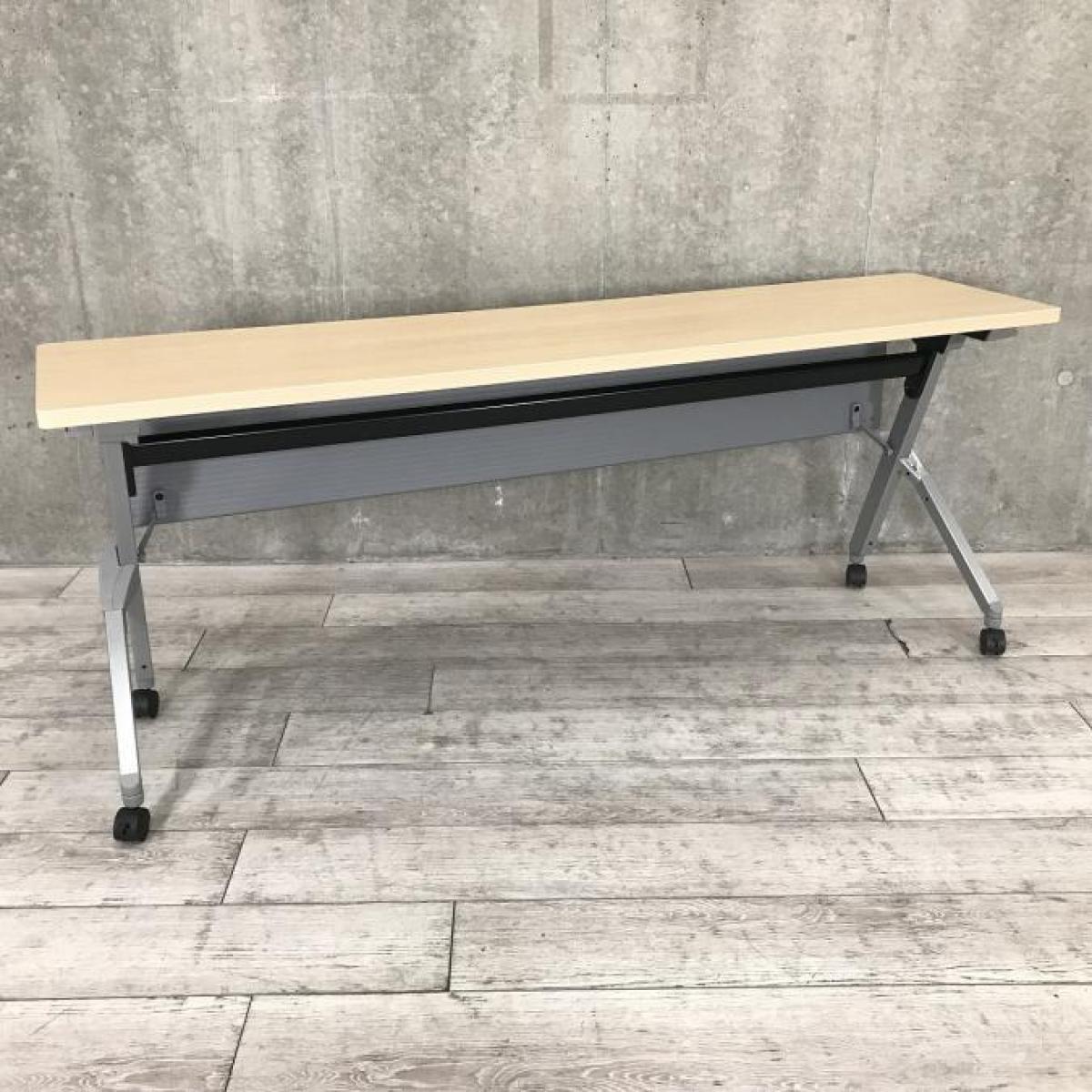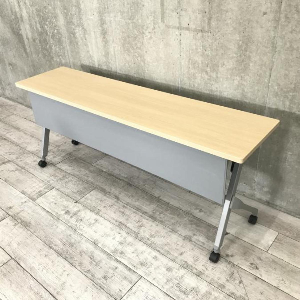 【W1500の折り畳みテーブルが入荷!】◆オカムラ/フラプター ナチュラル 木目 サイドスタックテーブル 収納 中古 博多 天神 九州最大級 オフィスバスターズ
