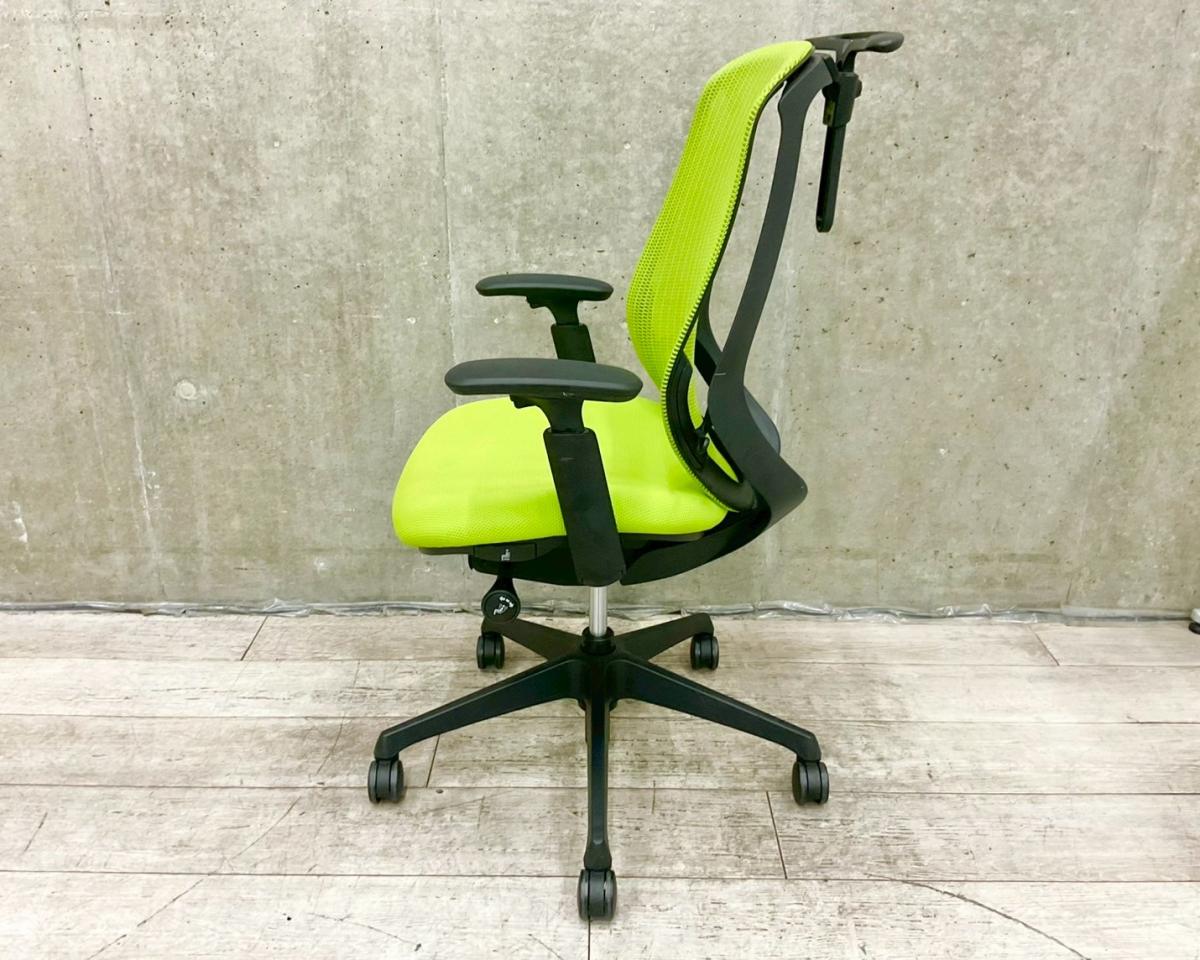 【前傾チルト機能付き!オカムラ製品で最も人気を集める高機能メッシュチェア!】■オカムラ(okamura)製 シルフィ(Sylphy)チェア ハイバック 肘付き ■可動肘 ■ライムグリーン × ホワイトシェル【状態良好品!】