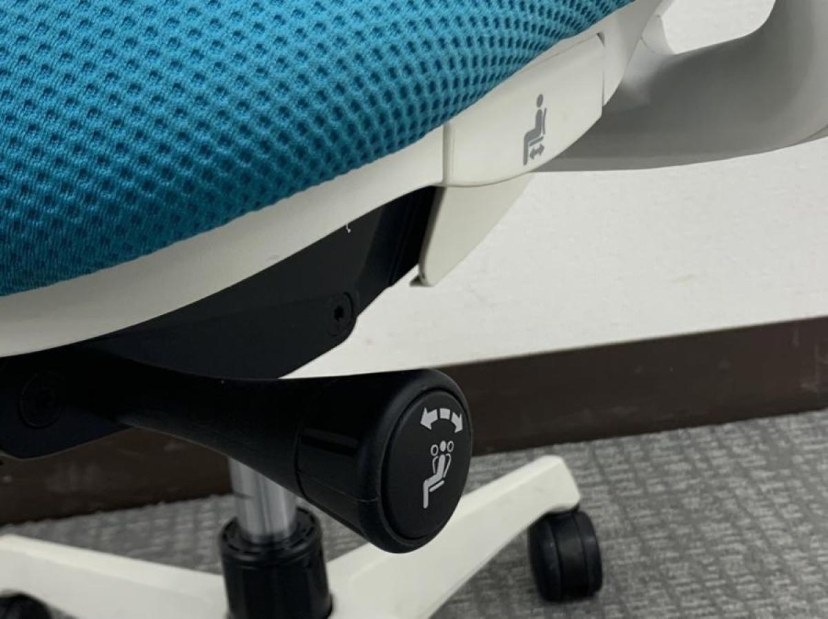 - 座面右下のダイヤル操作で、リクライニングの強弱調整が行えます。これまでのダイヤル式よりも、少ない回転数で、最弱?最強の調整が可能です。