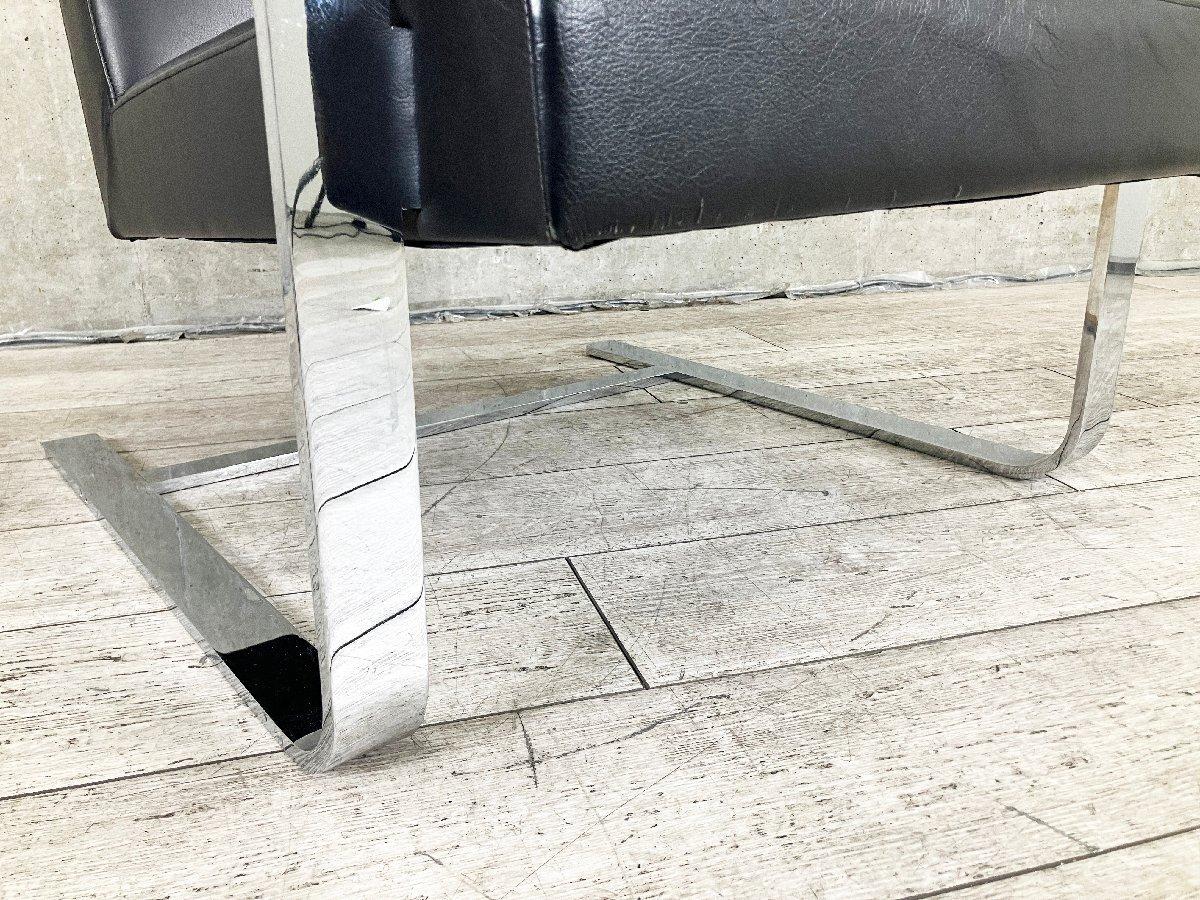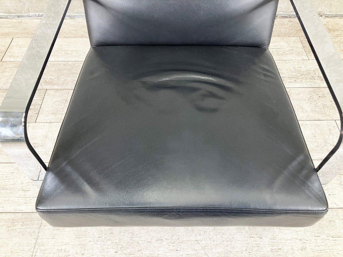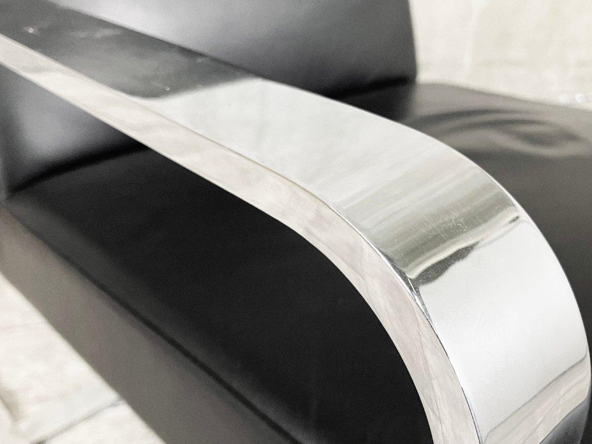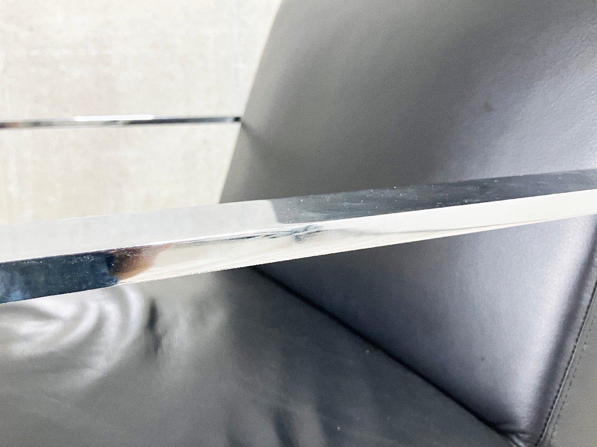 クロームメッキの脚と、ファブリックやレザーの背座が織りなすシャープな存在感が魅力です。 リビングはもちろん、ホテルや空港、美術館など多様な空間に調和します。