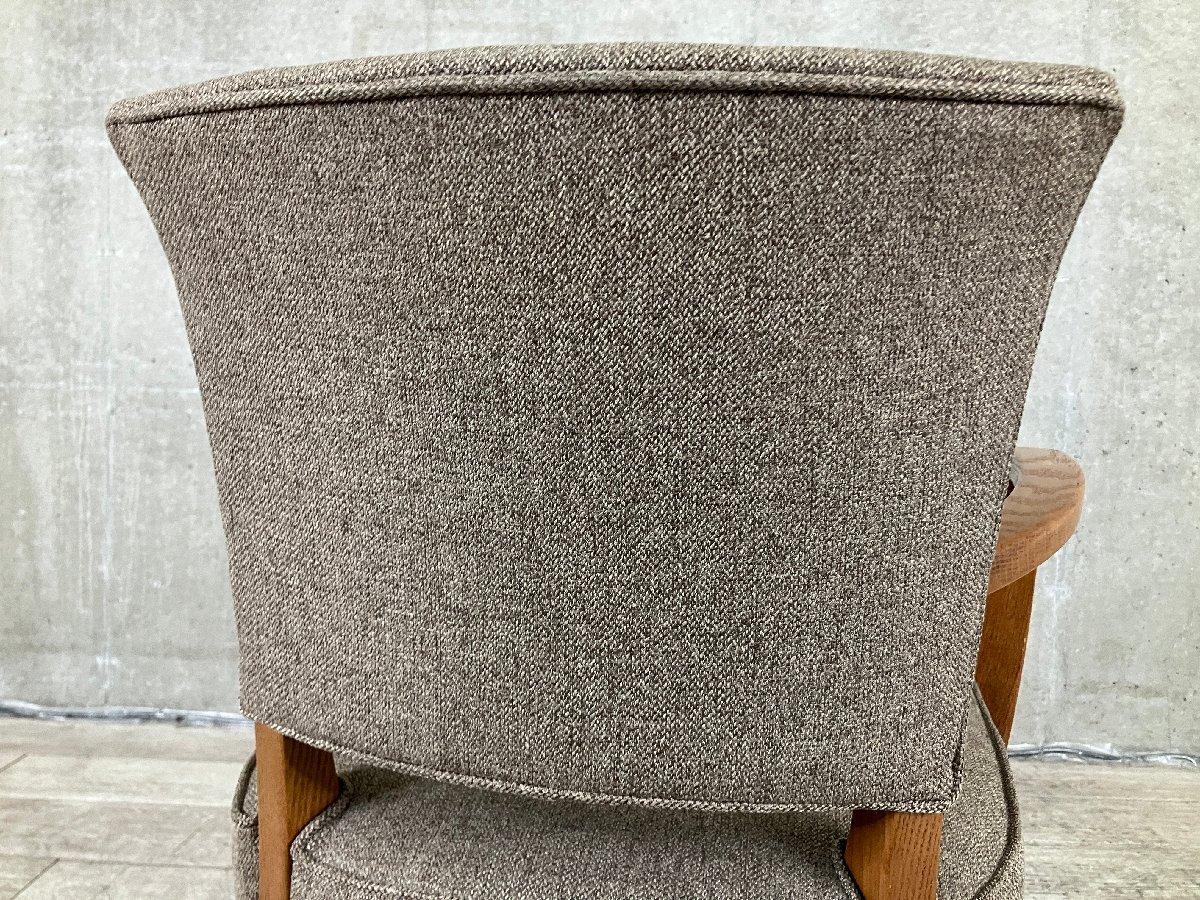当時は座面が広く背が低い、重厚でどっしりとした造りが特徴でした。 その独特のエレガントなフォルムは崩さず、現代的に洗練されたスタイルへと再構築しています。