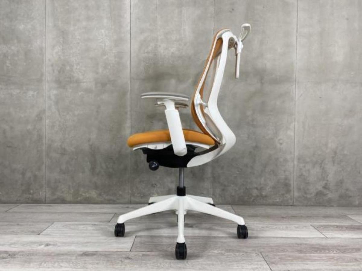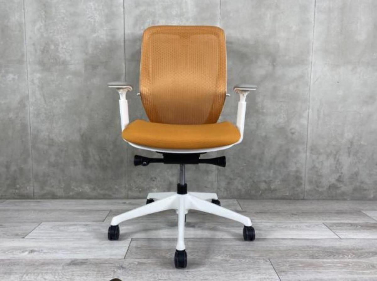 【在庫入替セール品!】【背のカーブを変えられる新感覚のオフィスシーティング!】■オカムラ シルフィーチェア 可動肘付 オレンジ ハンガー付 ホワイトフレーム ■新感覚のオフィスシーティング!【Okamrua Sylphy】