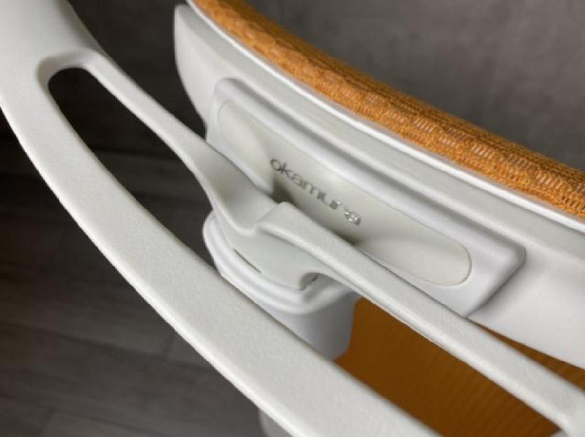 - 座面右下のダイヤル操作で、リクライニングの強弱調整が行えます。これまでのダイヤル式よりも、少ない回転数で、最弱?最強の調整が可能です。