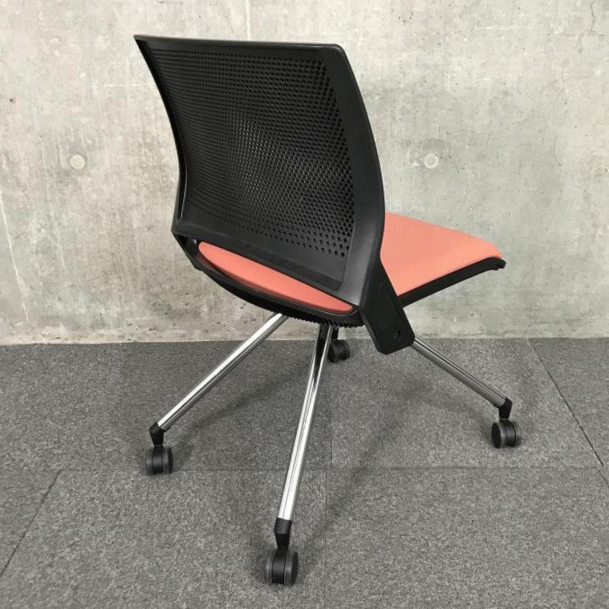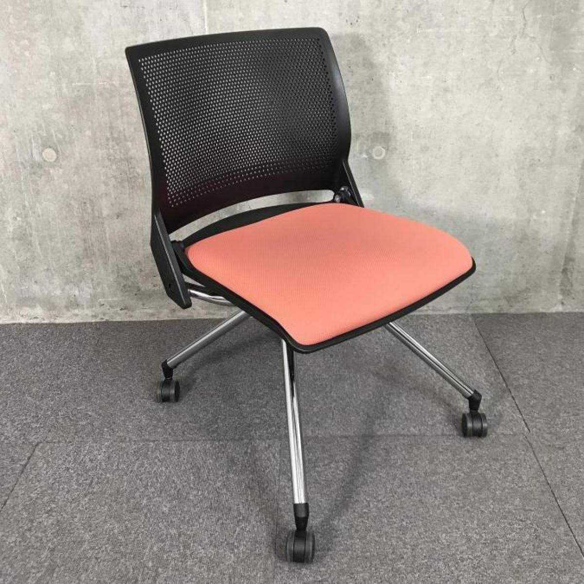 オカムラ クリール ネスティングチェア 樹脂メッシュ 背:ブラック 座:ピーチ 収納効率もよく会議室にうってつけ【愛知・名古屋・豊田・静岡・浜松】