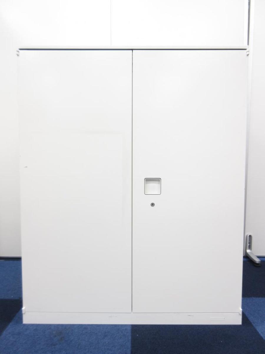 【オフィスの書類をスッキリ整理!取っ手がどの方向からでも開くマルチハンドルが人気!】■オカムラ(okamura)製 レクトラインシリーズ ローキャビネット 両開き書庫 H1250㎜ ■ホワイト ■シリンダー錠
