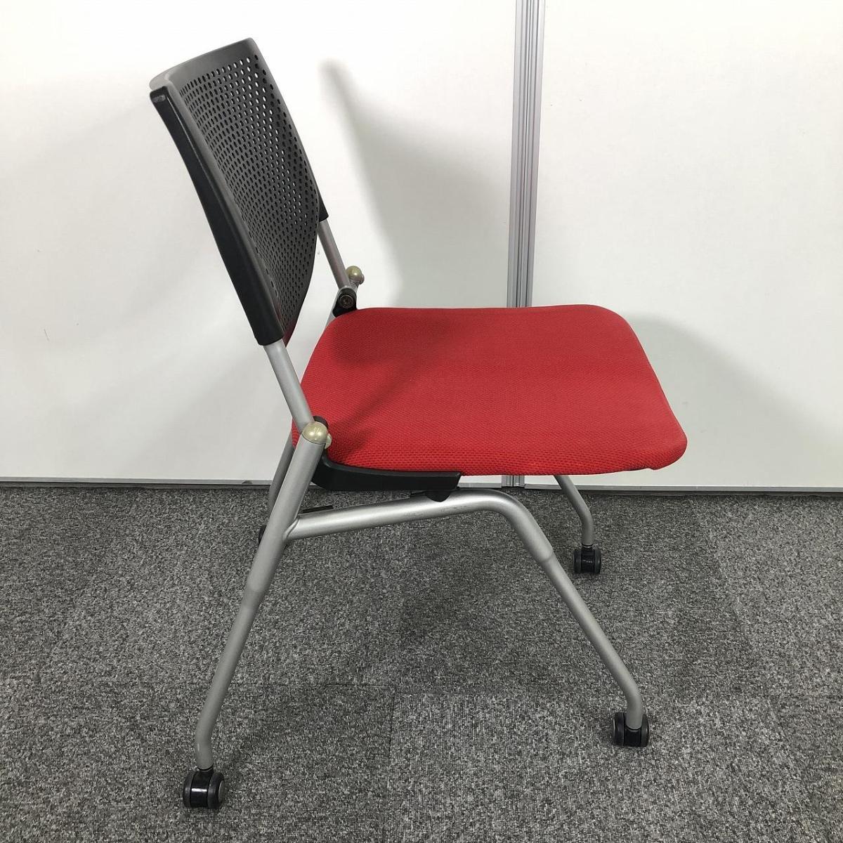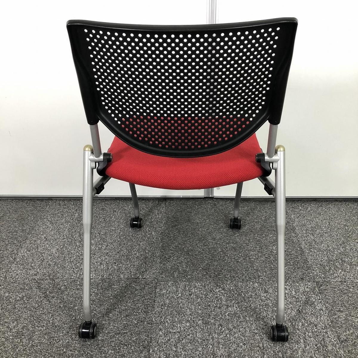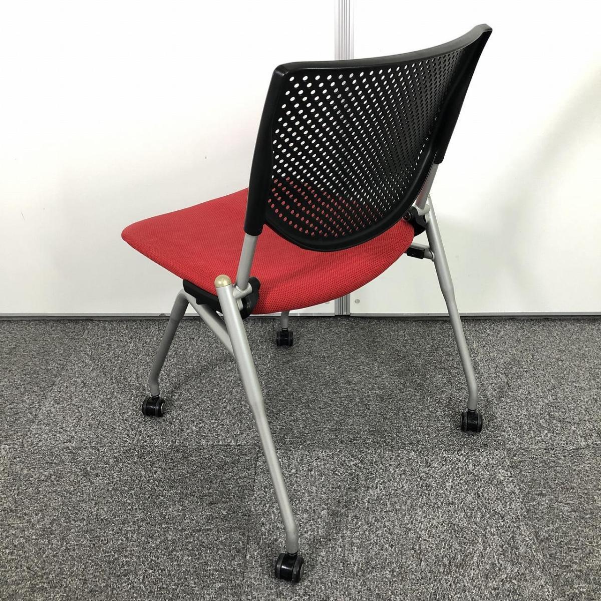 【9脚入荷】【座を跳ね上げ省スペースで収納可能!セミナーや研修に最適!】■オカムラ(okamura)製 プロスタックシリーズ ネスティングチェア ミーティングチェア ■背面樹脂メッシュ ■レッド- 神戸・三宮店