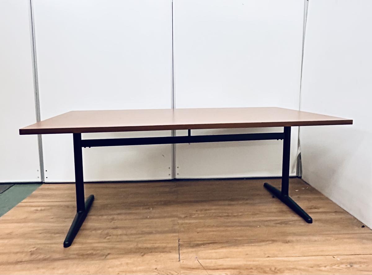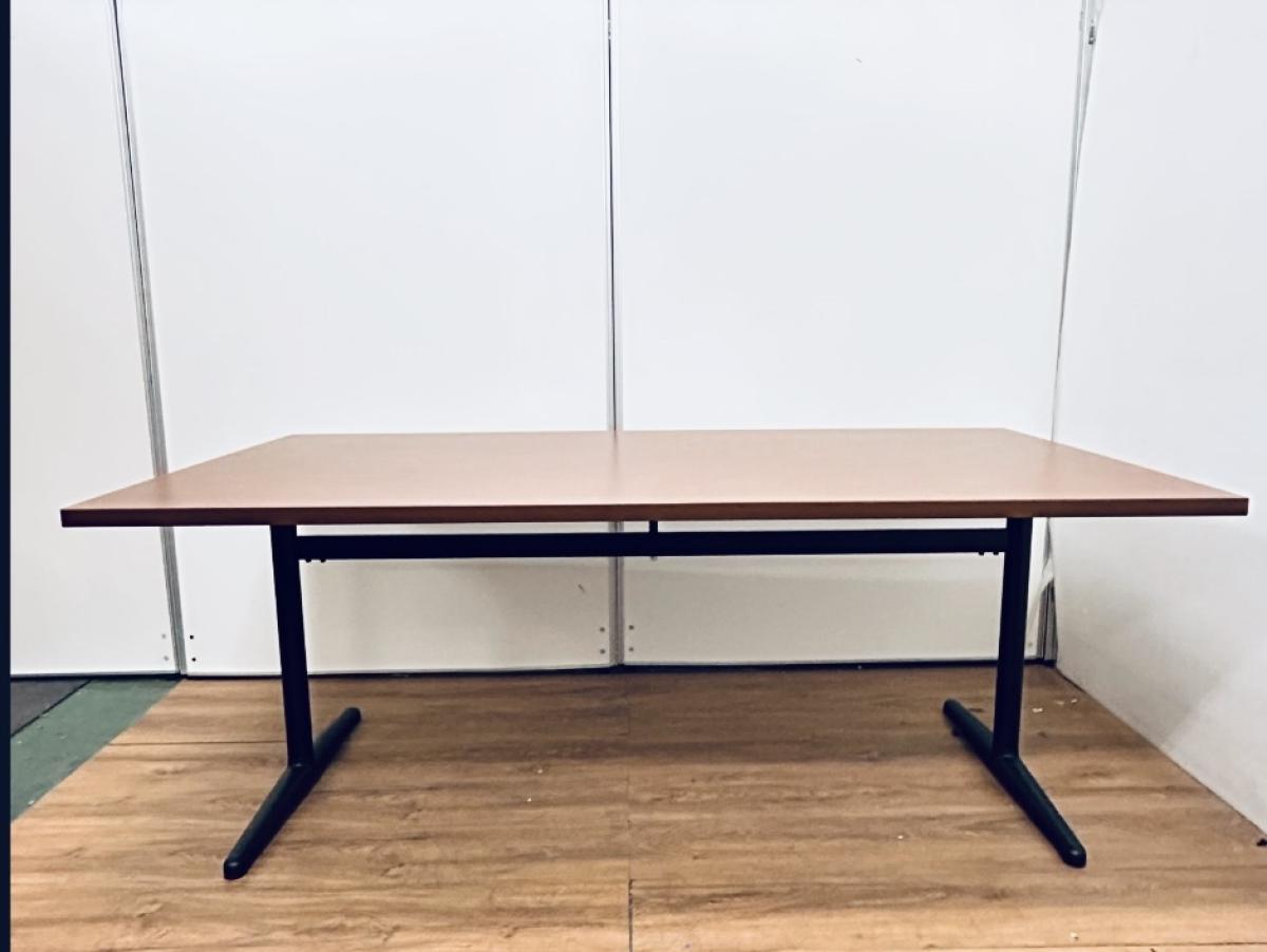 【1台入荷】お洒落なパブリック製カフェテーブルが入荷!中古 テーブル 会議 ミーティング ブラウン天板 ブラック脚 1800×900 オフィスバスターズ 梅田本店- 大阪梅田本店