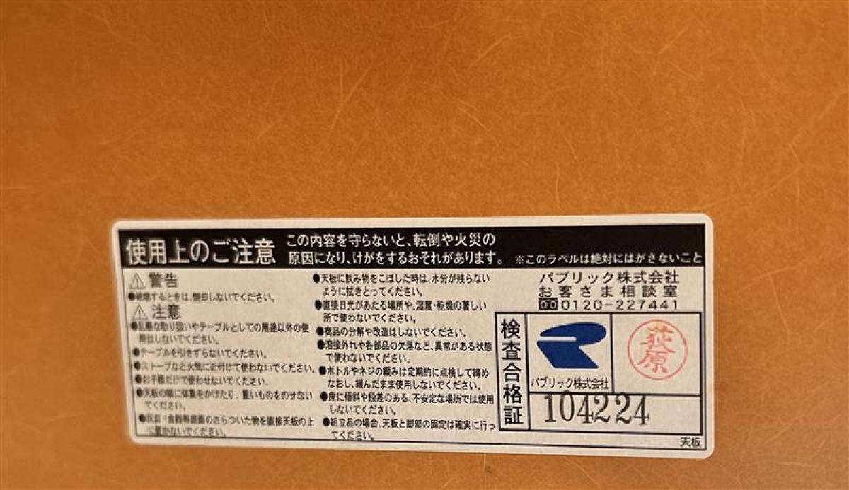 - 一部不具合あり天板歪み、アジャスター無し、キャスター使用不可ようなそのテーブルの本来の効用を果たすための機能以外の一部が使用不可な状態。(例、キャスターロッ ク機能使用不可、棚板無し等がある。)