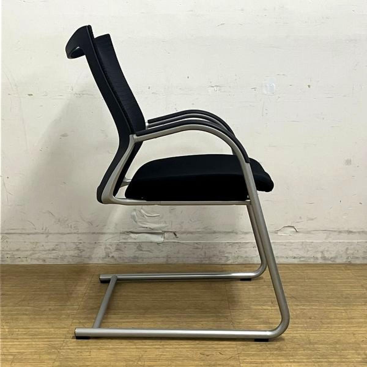 【在庫入替セール】オカムラ バロン ゲストチェア(ミーティングチェア) 背メッシュ×座クッション カンチレバー脚 ブラック×シルバー- 名古屋千種店