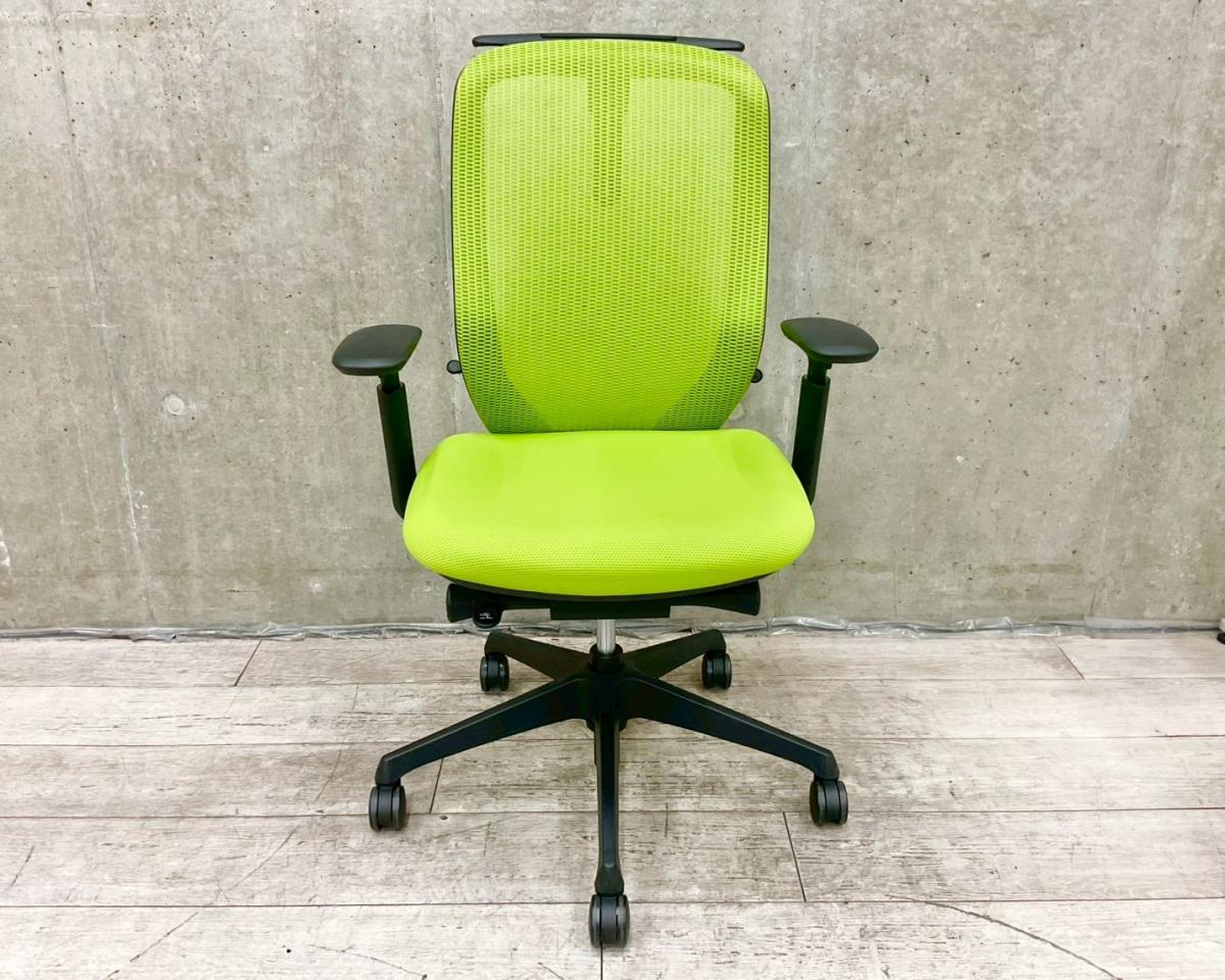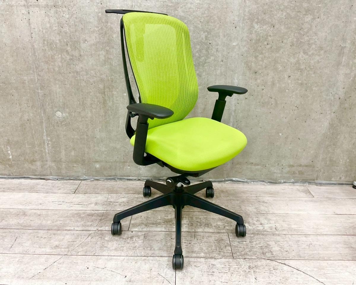 【前傾チルト機能付き!オカムラ製品で最も人気を集める高機能メッシュチェア!】■オカムラ(okamura)製 シルフィ(Sylphy)チェア ハイバック 肘付き ■可動肘 ■ライムグリーン × ホワイトシェル【状態良好品!】