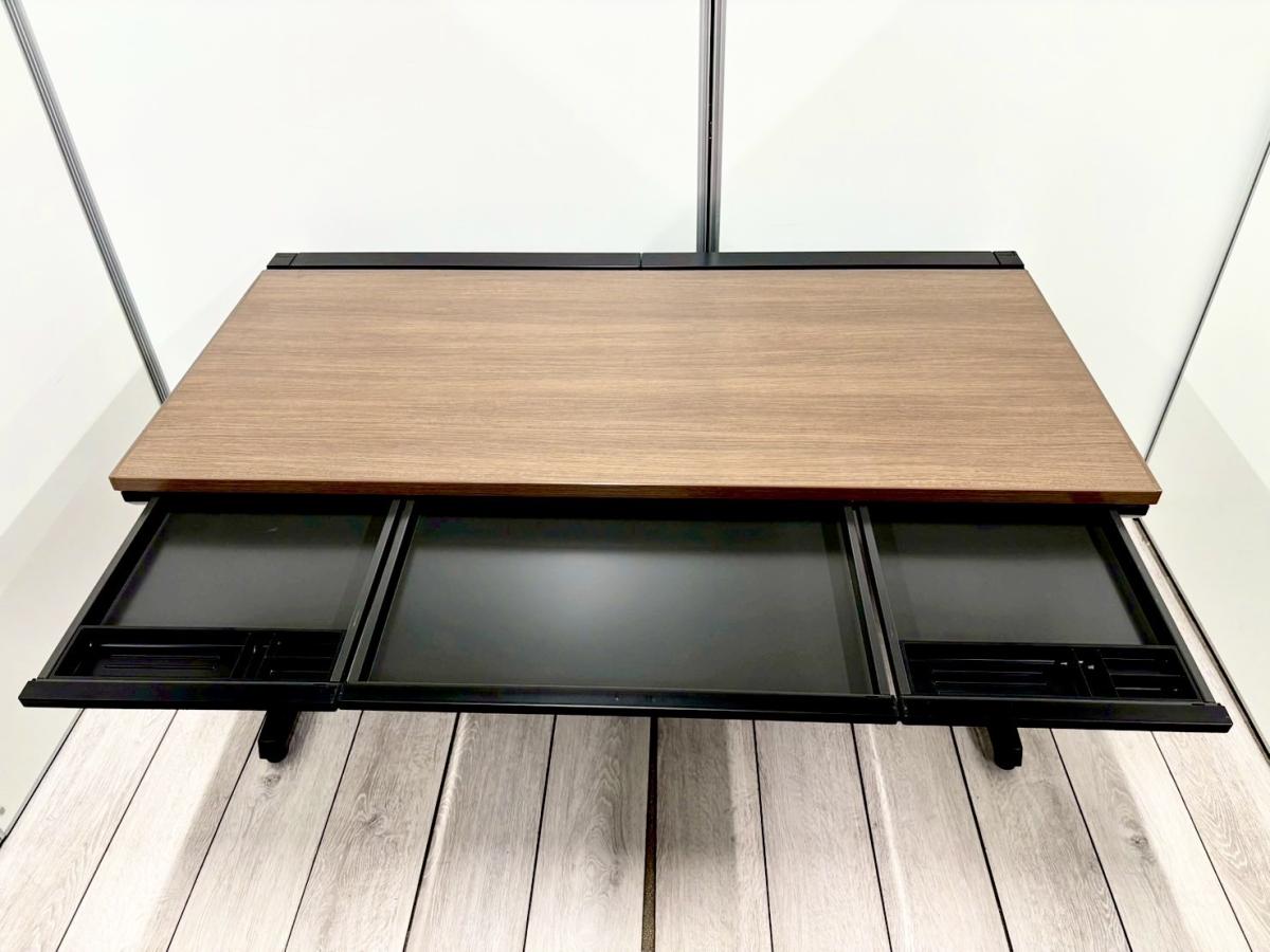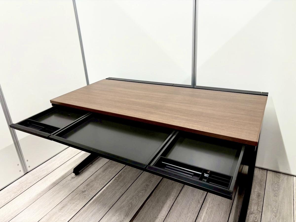 珍しいブラウン天板×本体ブラックのデスクとなっております。