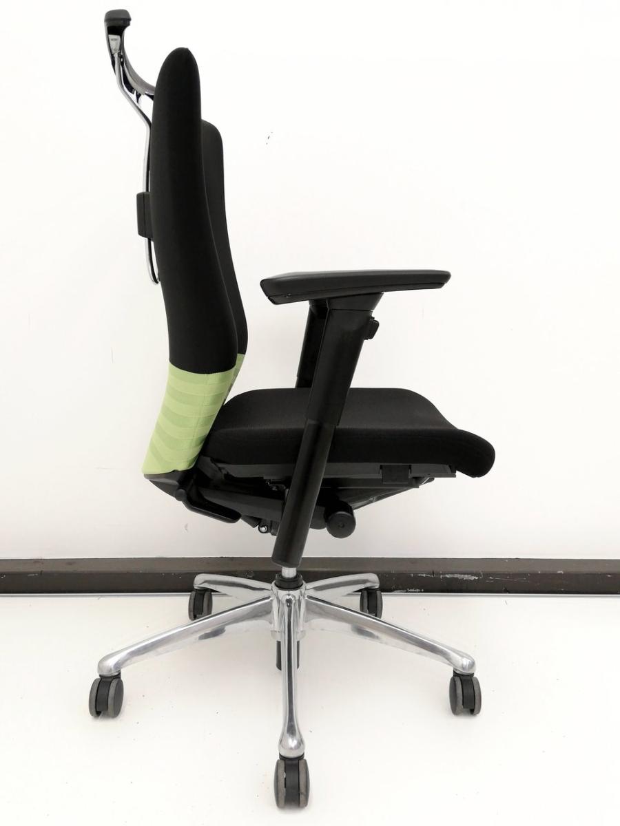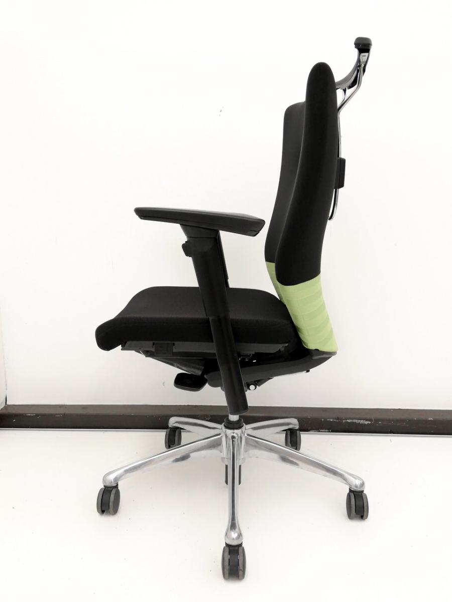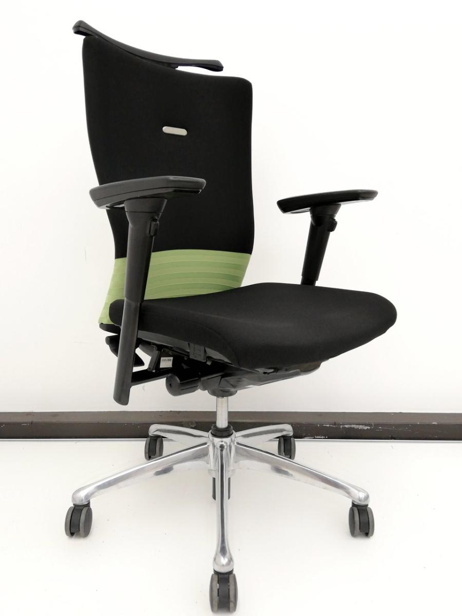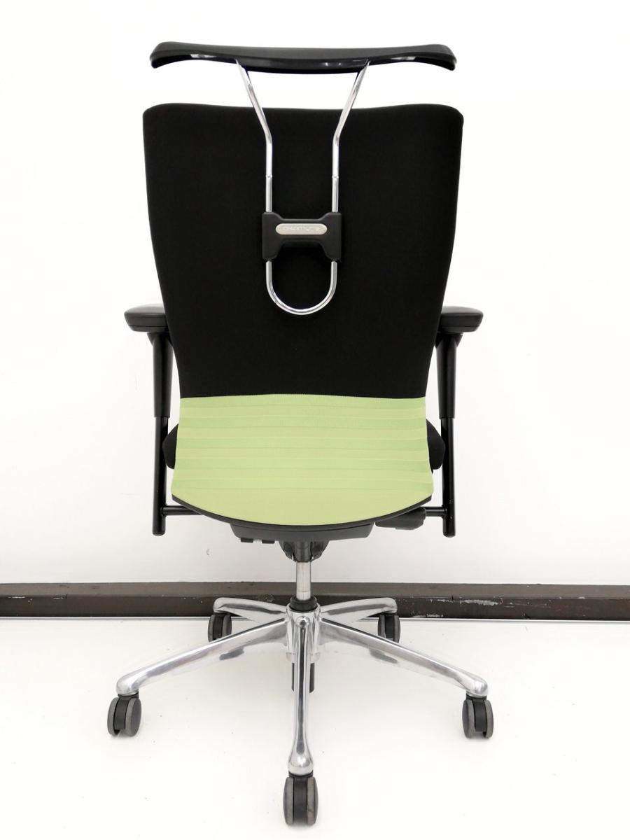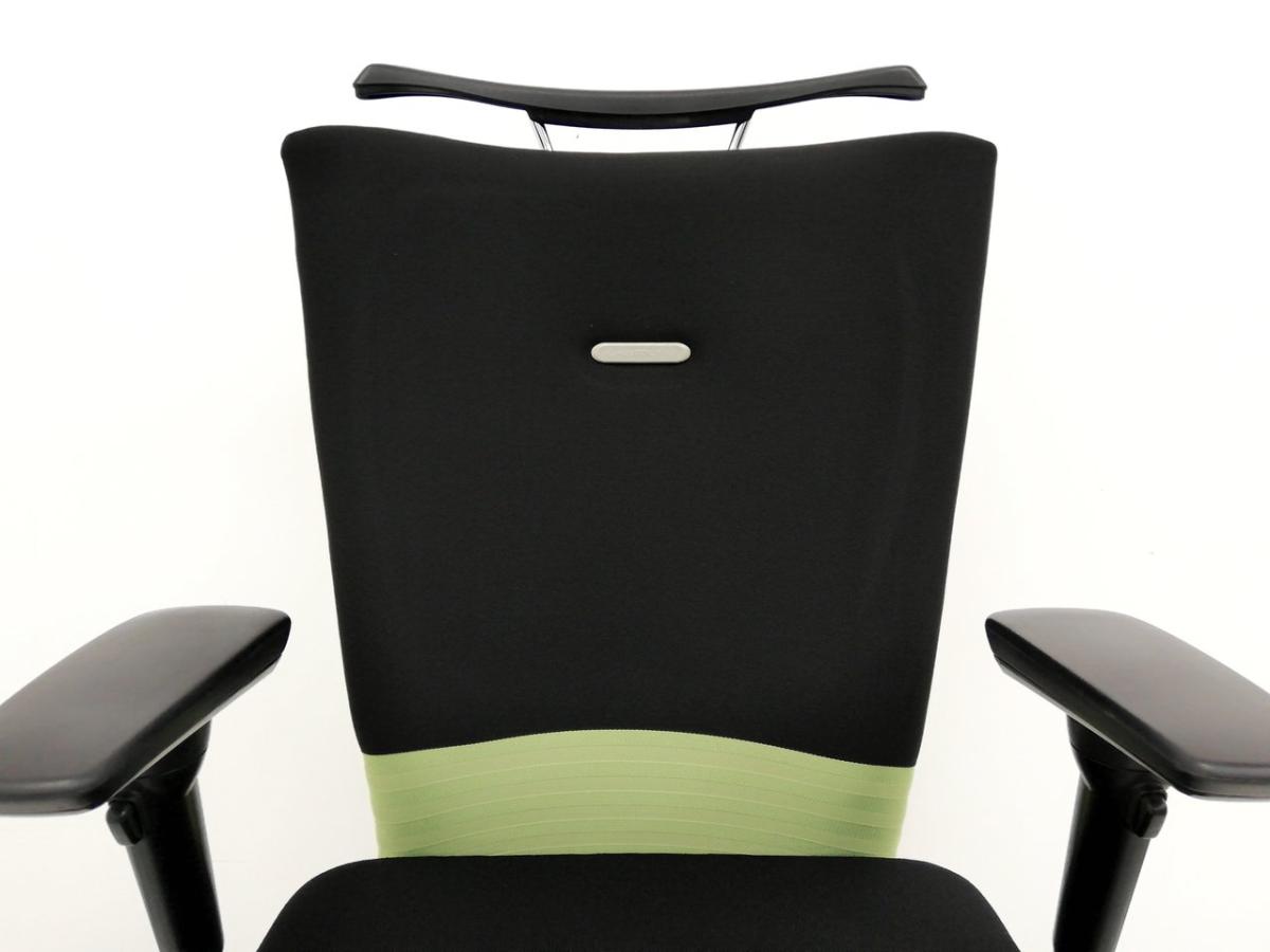 【人間工学に基づいた快適な座り心地! 背あてのしなやかな曲線が背中にフィット!】■オカムラ製 フィーゴチェア (feego) 肘付ハイバック シームレスタイプ ■肘付 ■ブラック×グリーン- つくば店