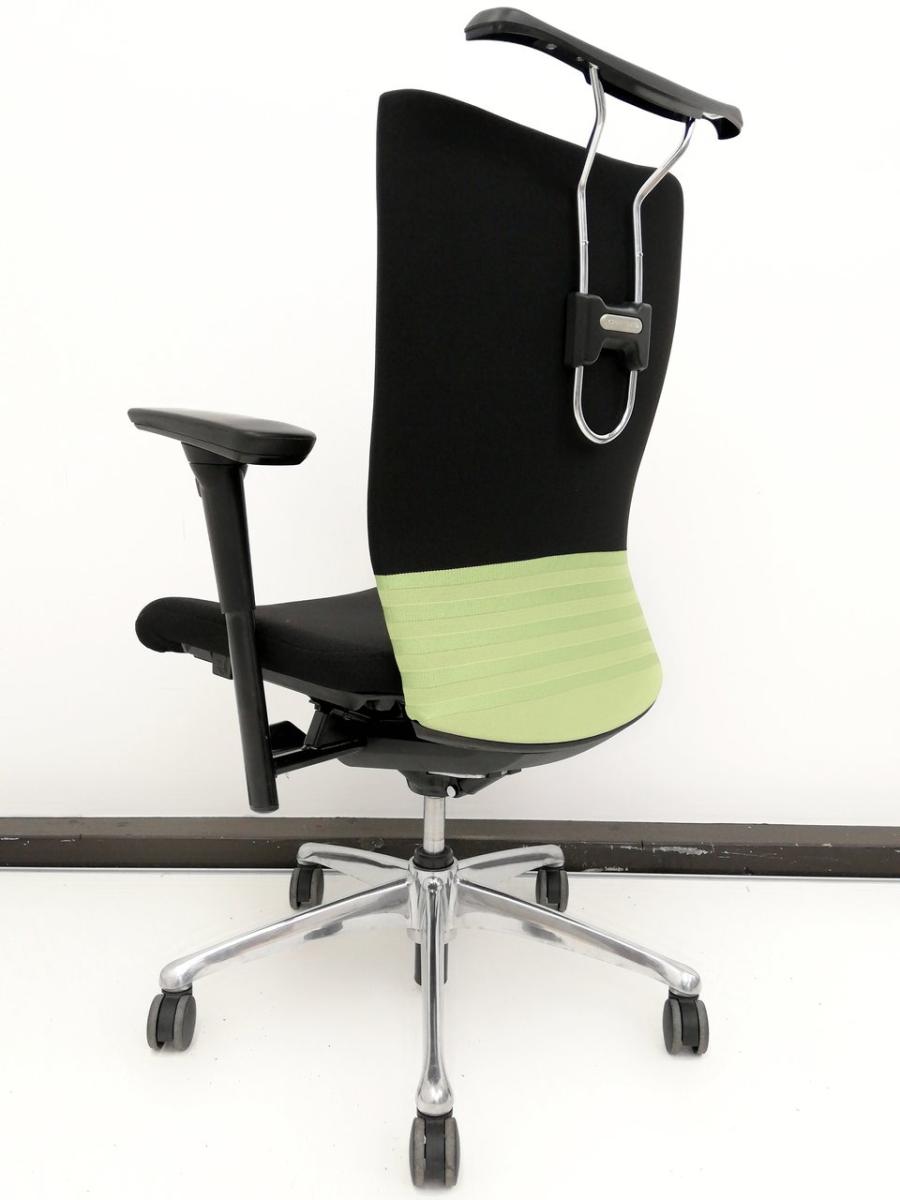 【背あてのしなやかな曲線が背中にフィット!快適な座り心地に高級感のあるデザインが人気!】■オカムラ(okamura)製 フィーゴ(feego)チェア 肘付き ハイバック ■シームレスタイプ ■可動肘 ■ハンガー付き ■ライムグリーン ×ブラック
