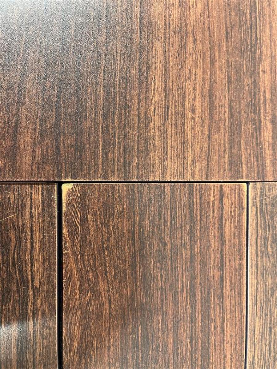 - あり黄ばみ・変色が広い範囲にうっすらある、または濃い黄ばみ・変色が一部ある。(例、天板、幕板、棚板、サイド部分、脚部等にある。)