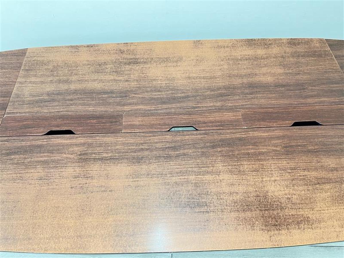 - 一部不具合あり天板歪み、アジャスター無し、キャスター使用不可ようなそのテーブルの本来の効用を果たすための機能以外の一部が使用不可な状態。(例、キャスターロッ ク機能使用不可、棚板無し等がある。)