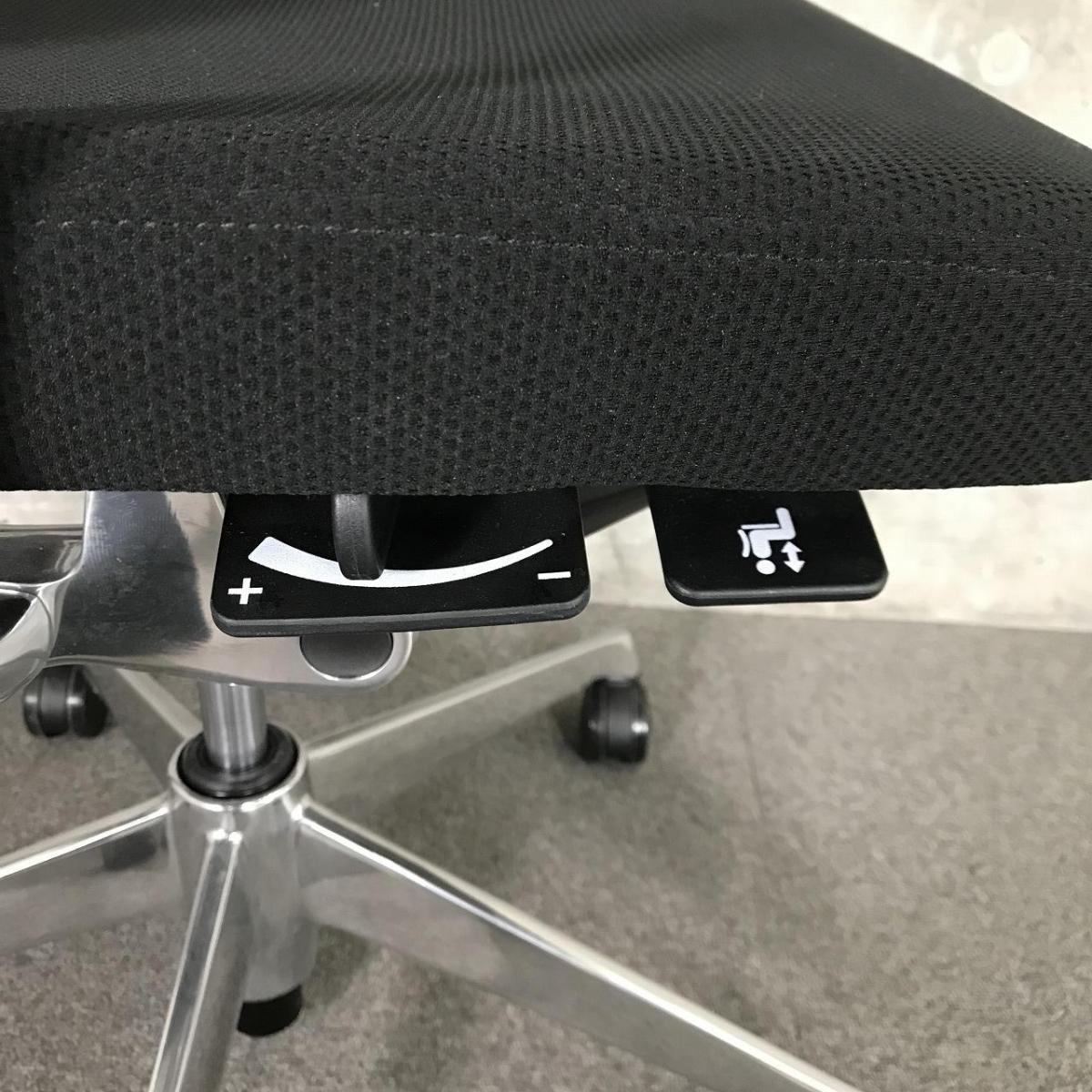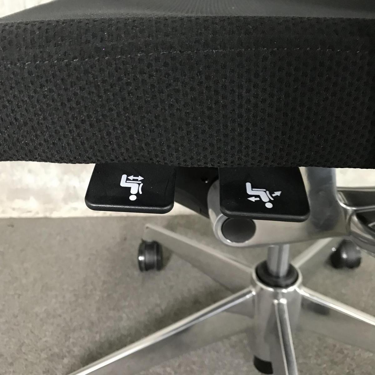 座面の高さや前後などの基本的な調整レバーが座面裏の前方に集約されており、姿勢を変えずに調節ができます。