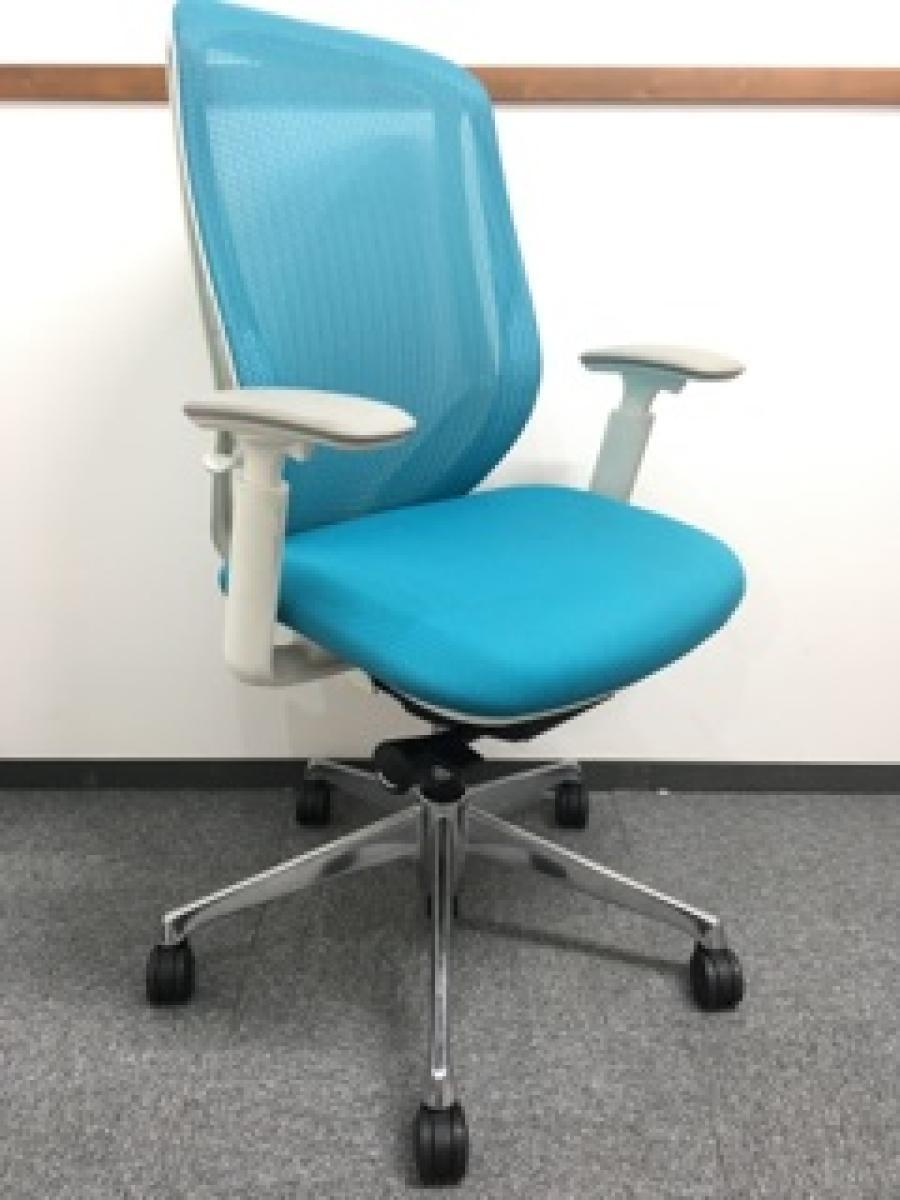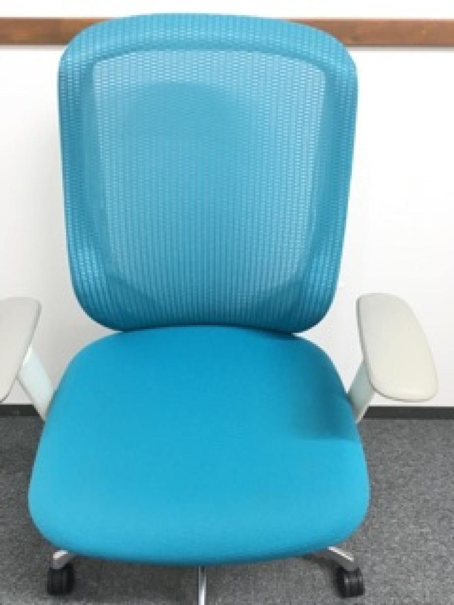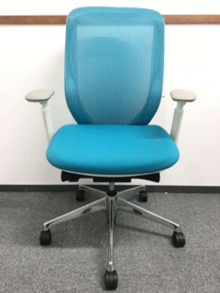 《現物写真だから安心!》オカムラ製の人気オフィスチェア【シルフィーメッシュ/可動肘/ヘッドレスト付き/ブルーグリーン】が先着1名様ご案内可能です!