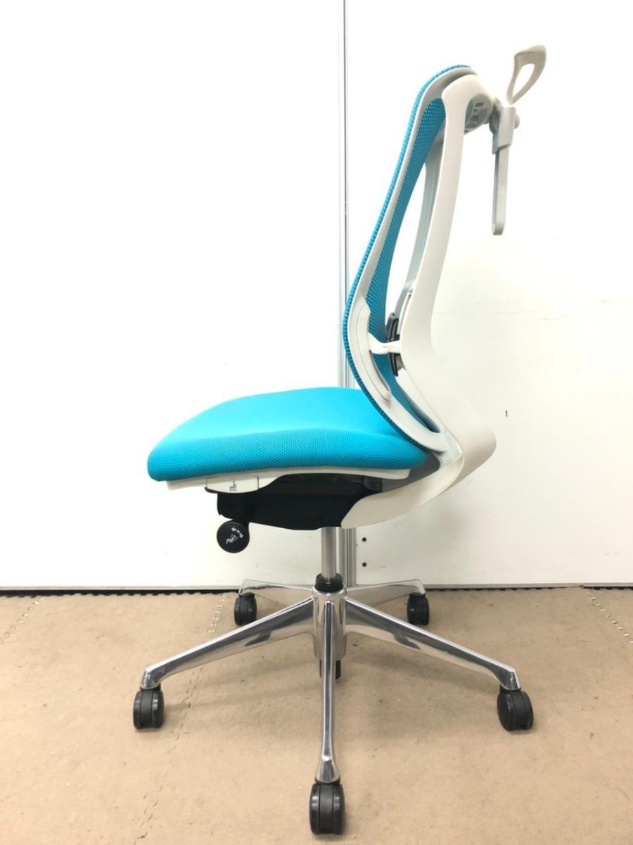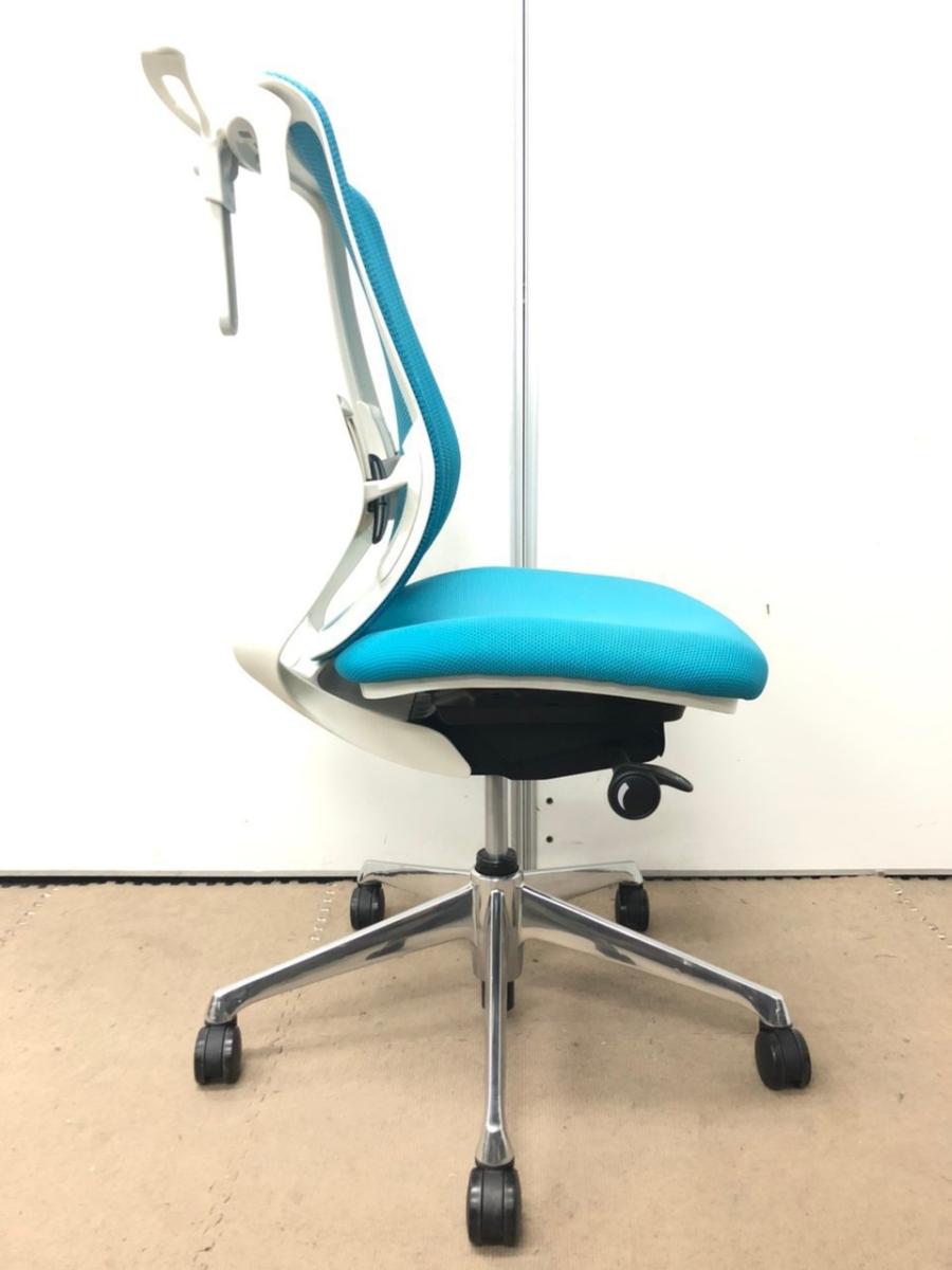 背のカーブを変えられる!前傾機能付きの新感覚のオフィスシーティング!包み込まれるような快適な座り心地! ■オカムラ/シルフィーチェア/ブルーグリーン コートハンガー付