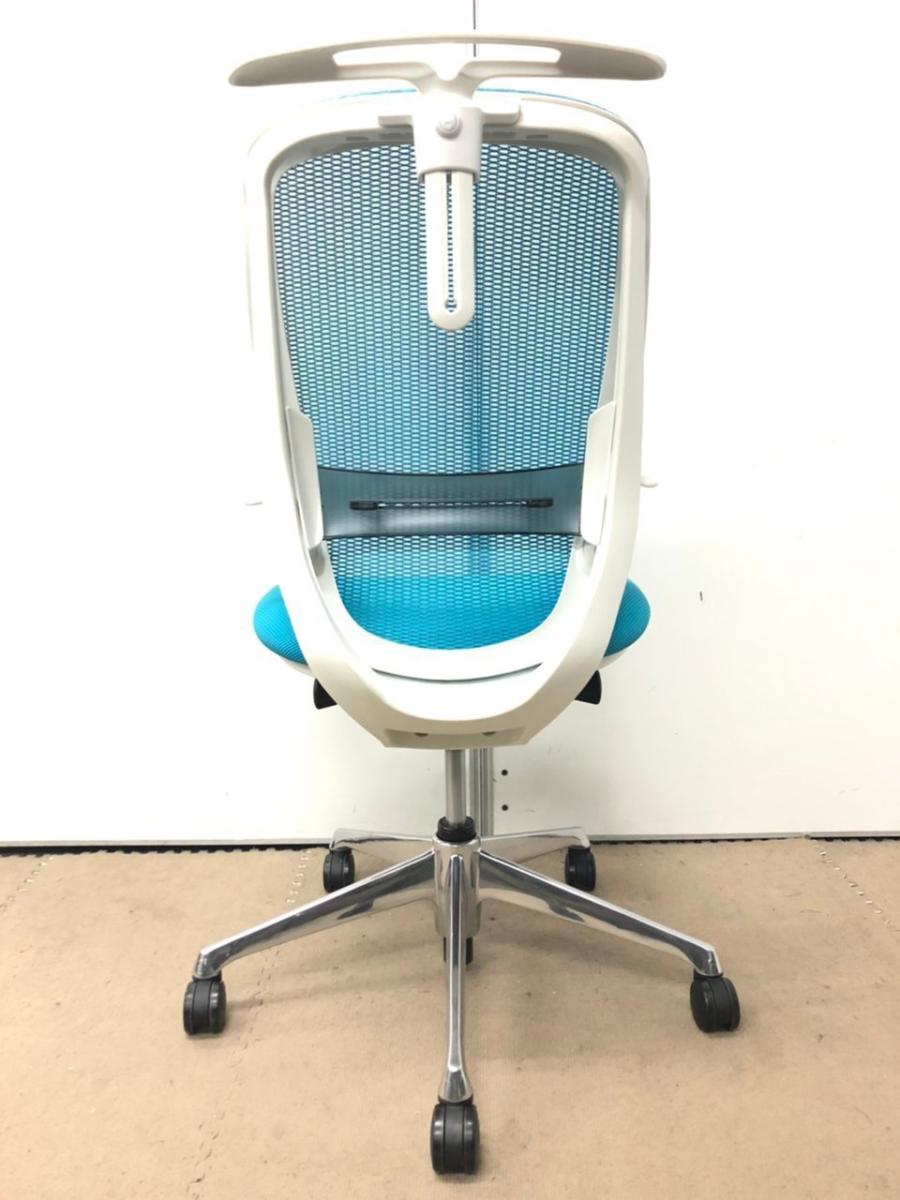 三次元曲面が身体にフィット!前傾チルト機能付き大人気メッシュチェア! ■オカムラ/シルフィーチェア(Sylphy)/ブルーグリーン×ホワイトシェル 肘付ハイバック ■背面メッシュ ■肘無し