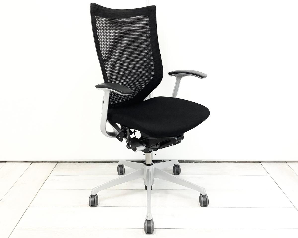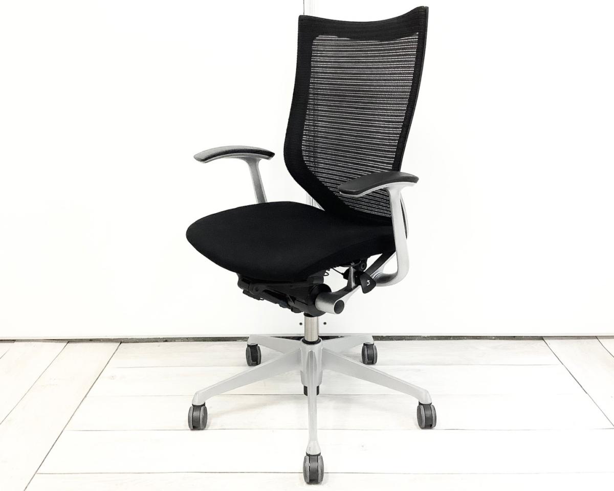 【長時間の着座でも疲れにくい!ベストなポジションが得られる先進設計!】■オカムラ バロンチェア 肘付 ブラック ハイバック シルバーフレーム ■良い椅子は腰を守る投資です!【Okamura Baron】