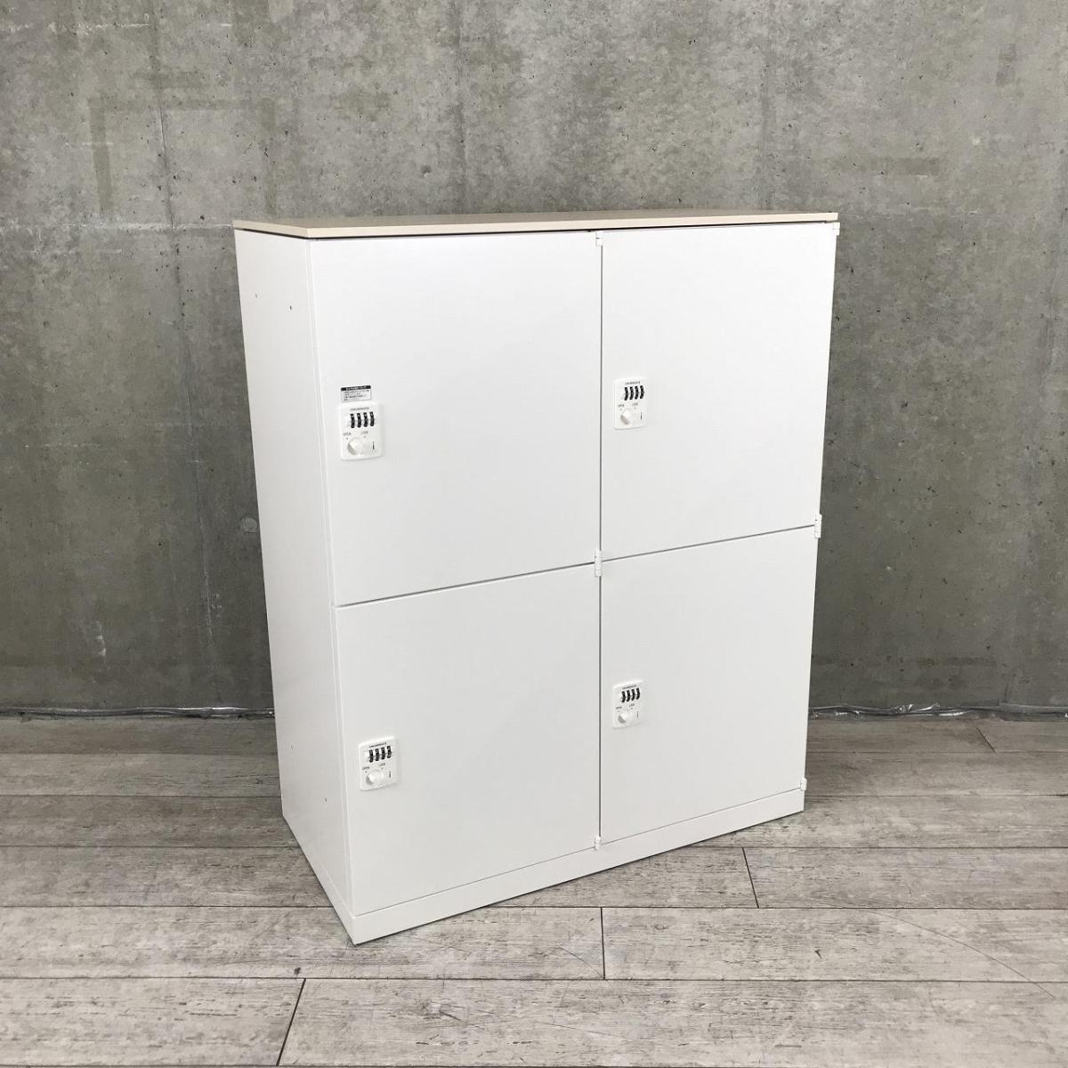 【商品入替のため、残り4台限り】オカムラ製 レクトライン ホワイト 4人用 投函口有り ダイヤル錠 ナチュラル木目調天板 フリーアドレスオフィスの必需品! ダイヤル錠式で鍵の持ち運び要らず! 4人用パーソナルロッカー!!※非常解除キーはついていません
