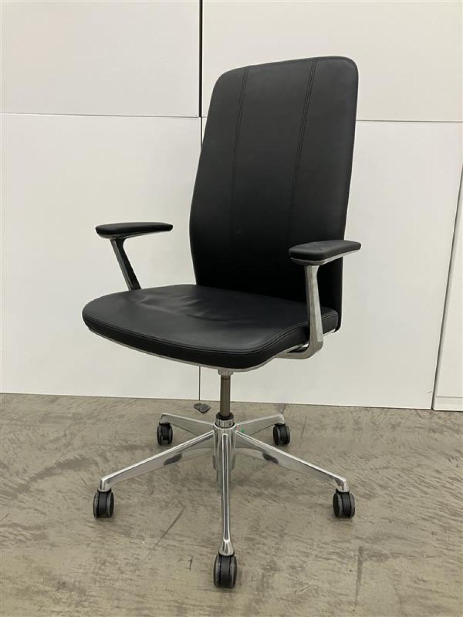 【関東倉庫在庫品】オカムラ製・『クラフティー』チェア入荷いたしました!レザー生地×ブラックカラー使用!シンプルなフォルムとコンパクトなメカニズム。機能と美しさを両立した高級感溢れる革張りチェアです!弊社使用欄【A01KNP】- 全店共通商品
