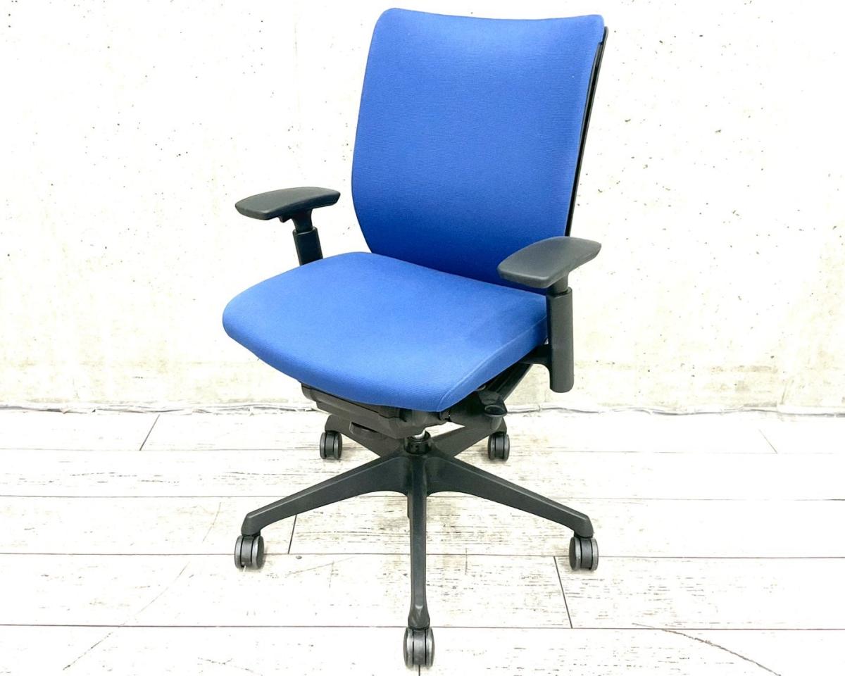 オカムラ ヴィスコンテ ローバックモデル アジャストアーム(可動肘)ブルー 背クッション スタンダードタイプ