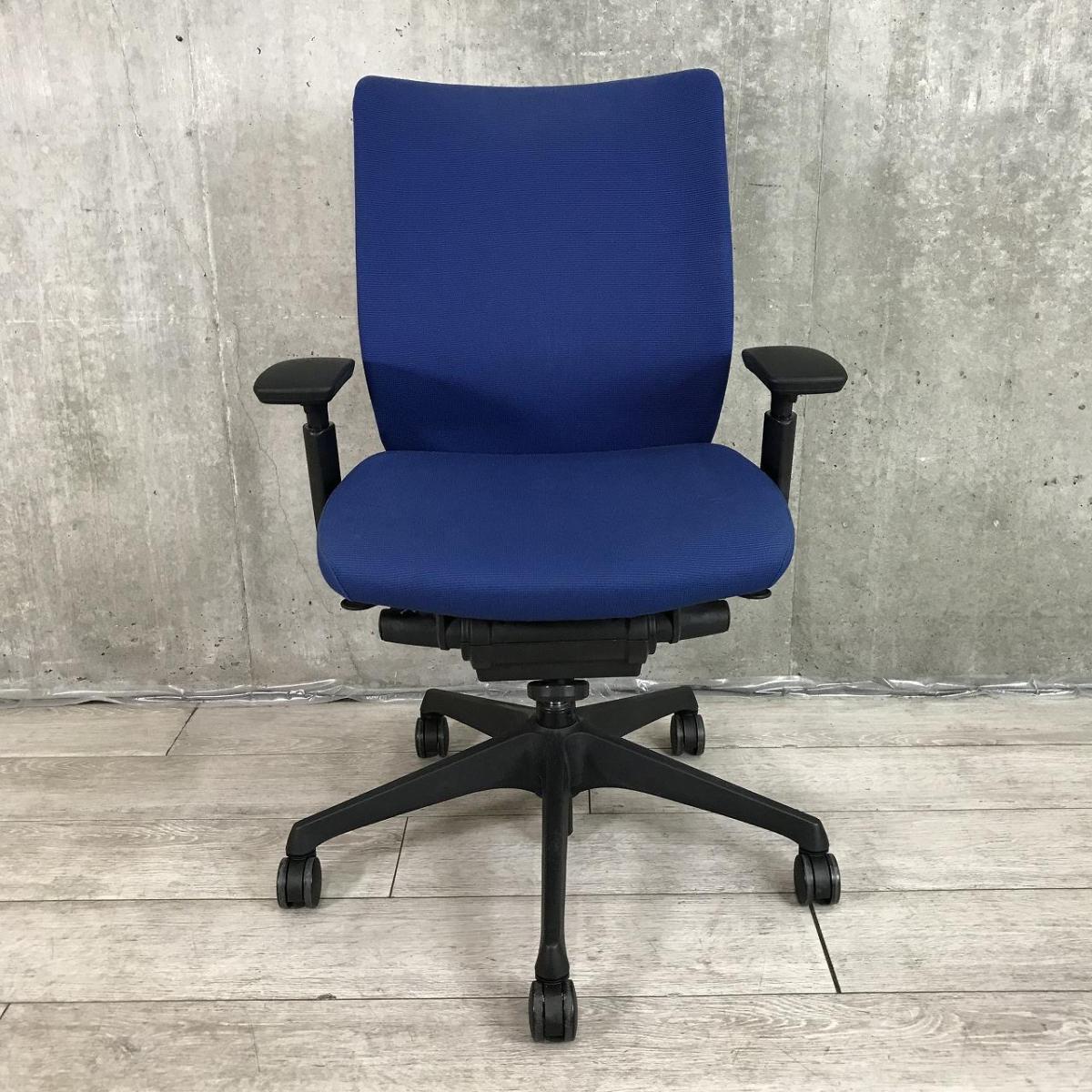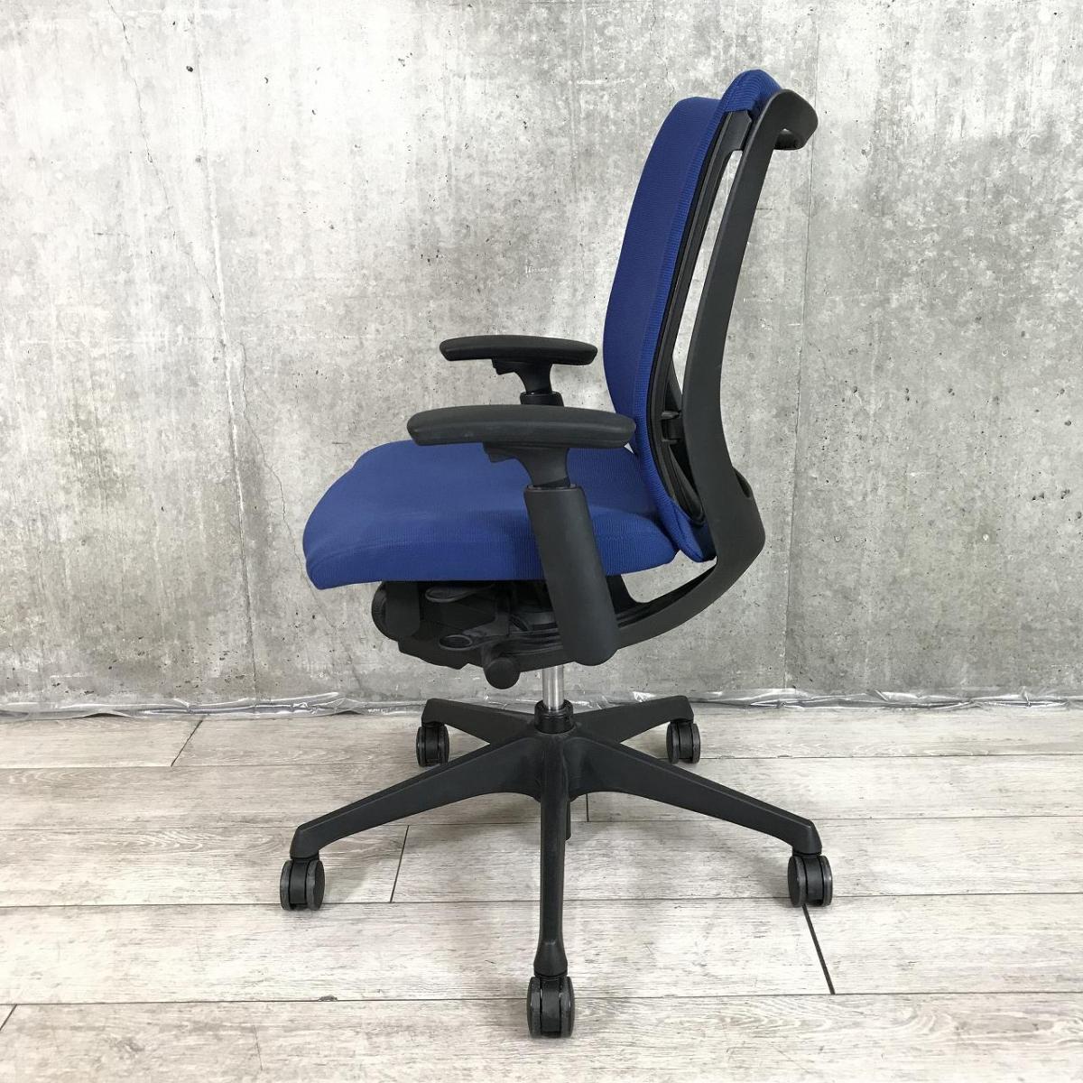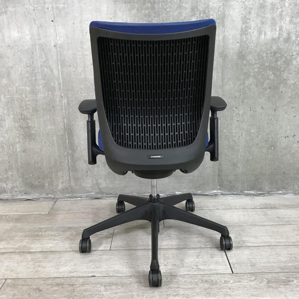 【2020年製】オカムラ ヴィスコンテ ローバックモデル デザインアーム(固定肘) ブルー 背クッション スタンダードタイプ