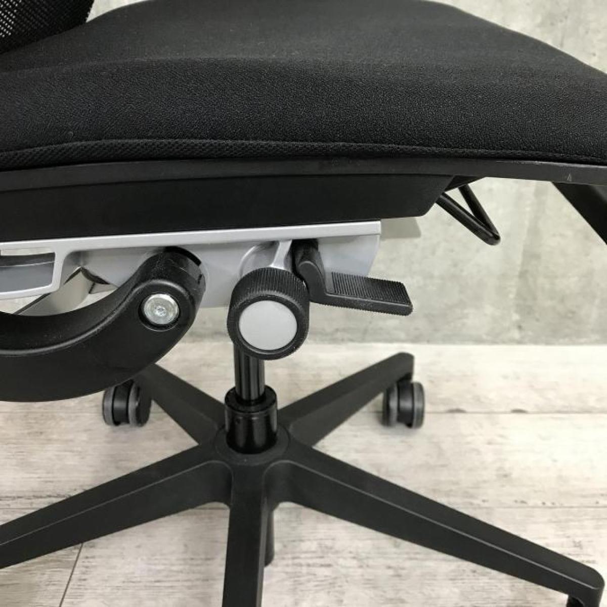 快適な座り心地に不可欠な調節機能である、上下昇降、座面の奥行き調整、リクライニングなどを備えており、操作もわかりやすく好評です。 特に、座面の奥行きは、座面下の左右に通った細いバーで調整でき、座ったままで軽やかに滑るように調整が可能です。 価格面では、新品では高めですが、中古は流通も多く、定価の3割前後の価格で高級チェアの座り心地を手に入れることができます!