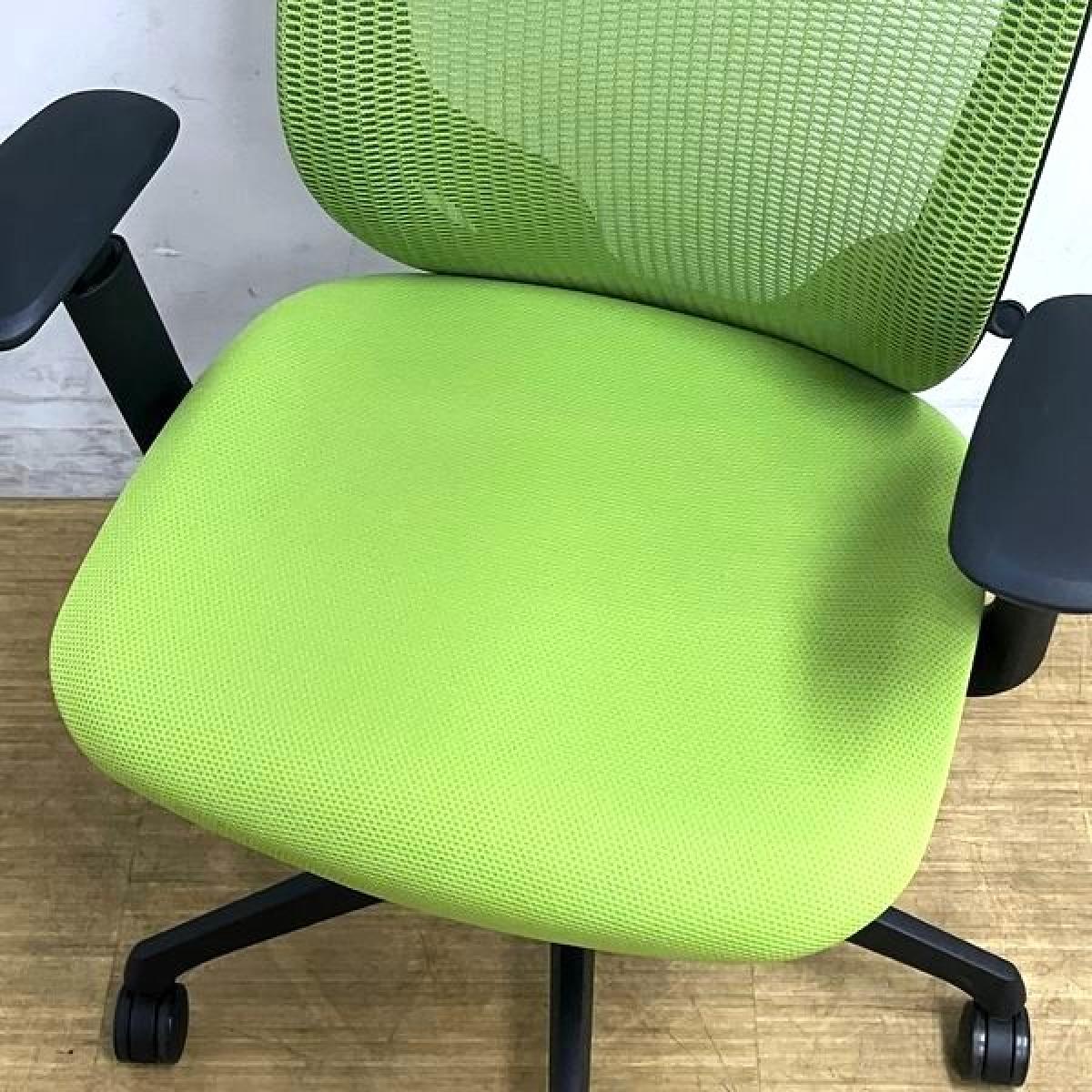 【ワーカーを支える機能を多数持つ人気チェア!優しい座り込みで姿勢も安定!】■オカムラ製 シルフィー 肘付ハイバックチェア 背面メッシュ ■可動肘 ■座面:ライムグリーン 脚:ホワイト オフィスバスターズ 東大阪店 2脚限定!