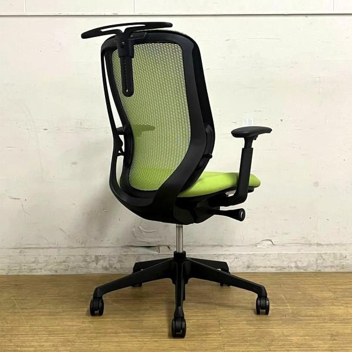 【2022年製】オカムラ シルフィーチェア ハイバック(メッシュ) アジャストアーム ライムグリーン×ブラック コートハンガー付き 前傾機能搭載でデスクワークが快適に- 名古屋千種店