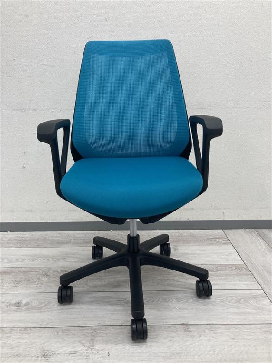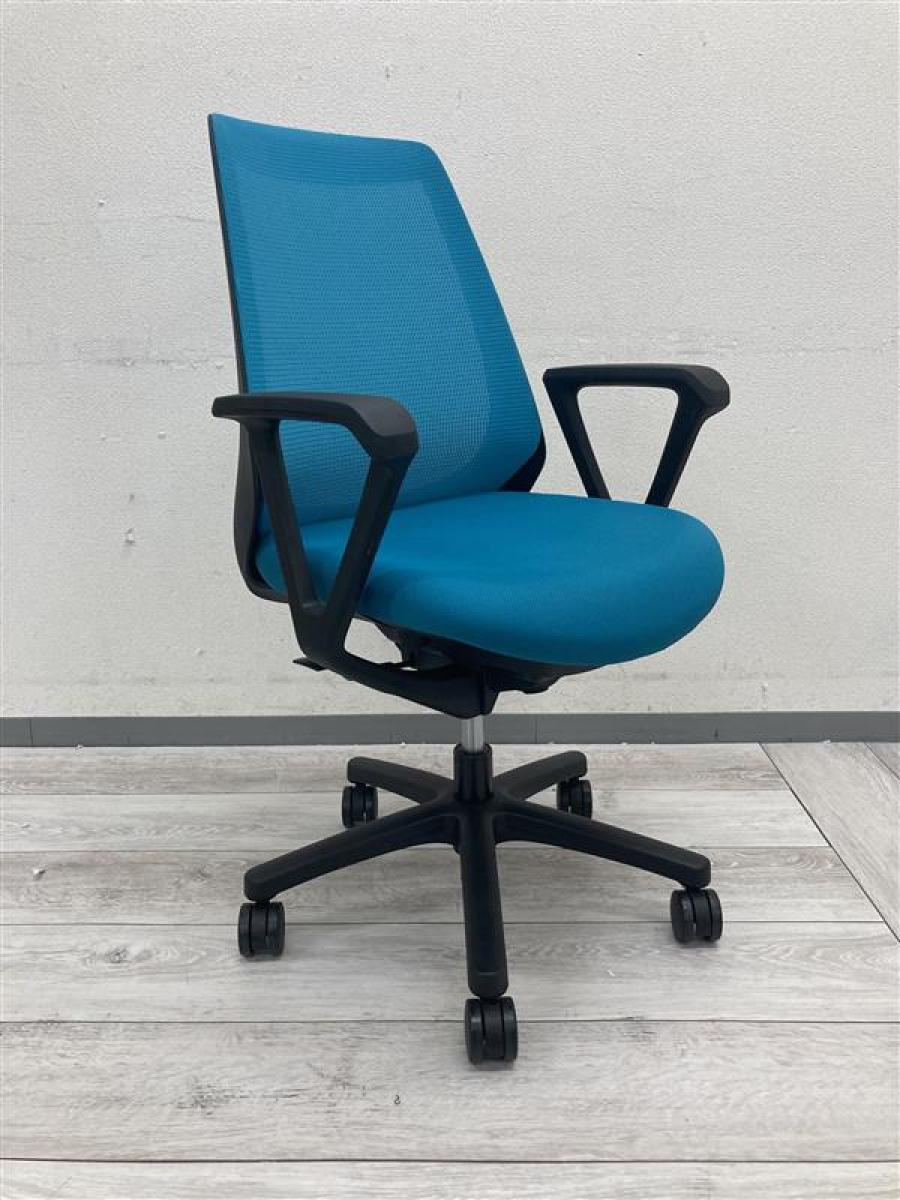 【コンパクトで使いやすい!】イトーキ ノナチェア ライトブルー ブラックフレーム 肘付きOAチェア 〈岐阜・愛知・三重・静岡・福井〉- 岐阜店