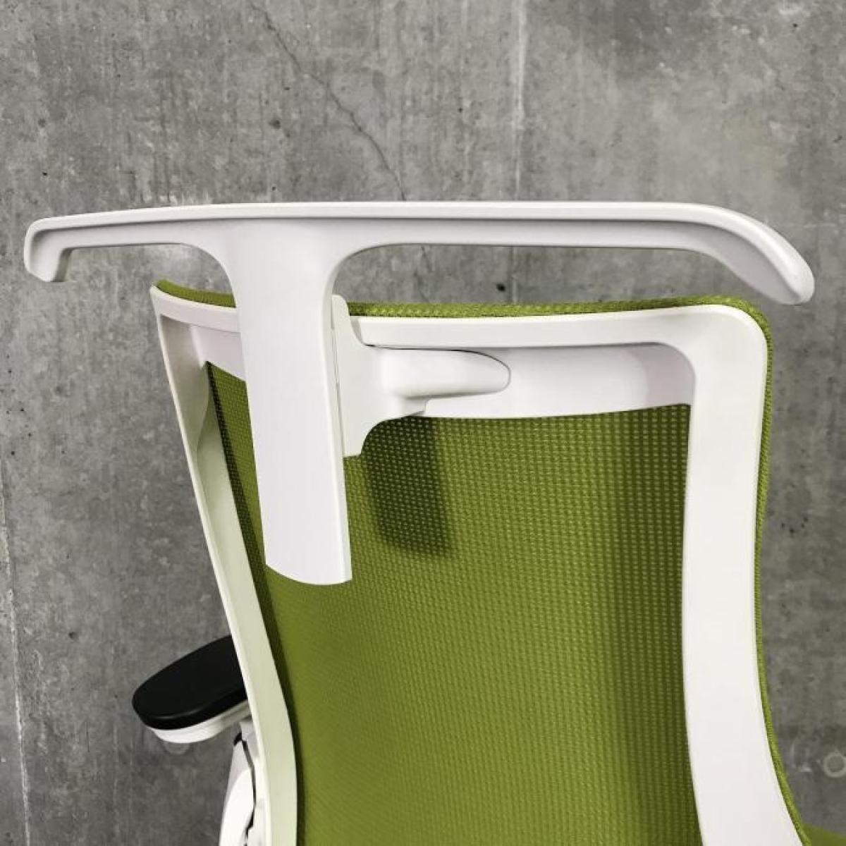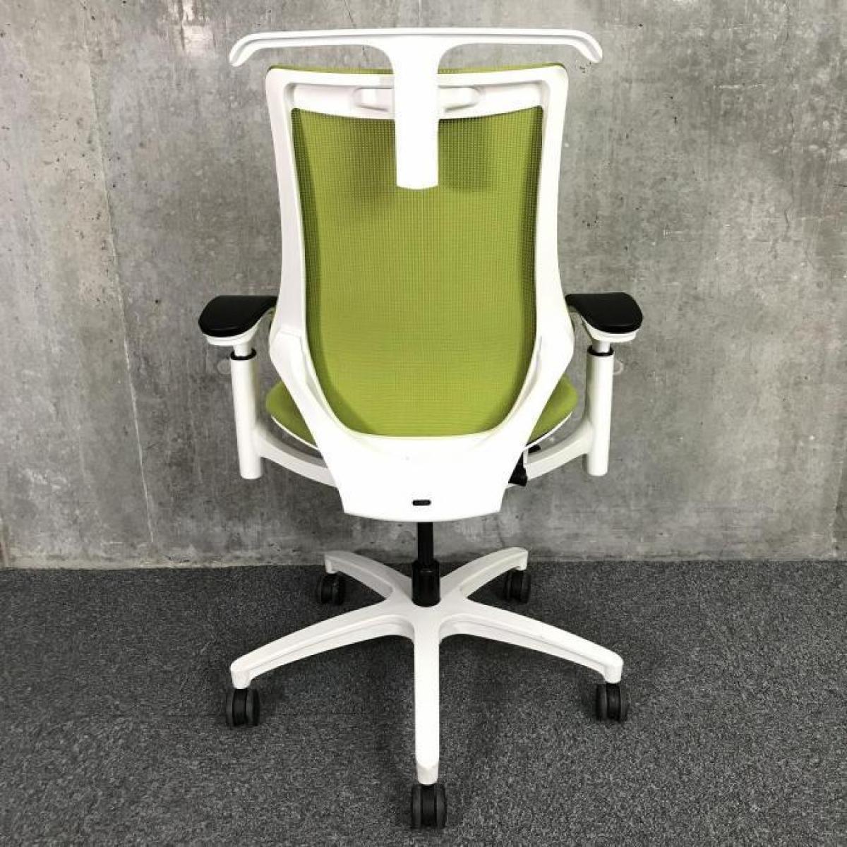 【在庫入れ替えSALE】【腰部の広範囲をソフトにホールドして圧力を分散!スタイリッシュなデザインのメッシュチェア!】■イトーキ製 エフチェア ハイバック 肘付き ■可動肘 ■メッシュバック ■グリーン× ホワイトシェル ■ハンガー付- 岐阜店