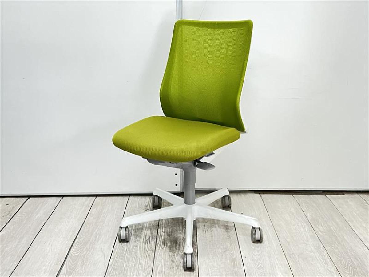 【在庫入替セール】オカムラ フルーエント 肘無し・ローバックモデル 背メッシュタイプ クロス:グリーン フレーム:ホワイト【愛知・名古屋・豊田・静岡・浜松】