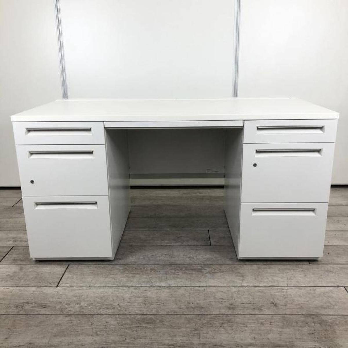 国内メーカー製 W1400mm両袖机 本体ホワイト ※高さ700mm