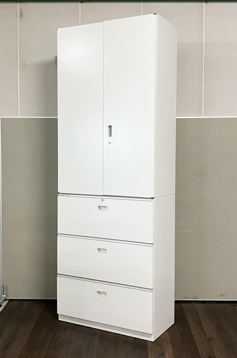 【大容量でスッキリ整理!観音開き+3段ラテラル書庫セットが入荷!】■イトーキ (ITOKI)製 シンライン(THUN LINE) ハイキャビネット (両開き+3段ラテラル) ■ホワイト ■シリンダー鍵
