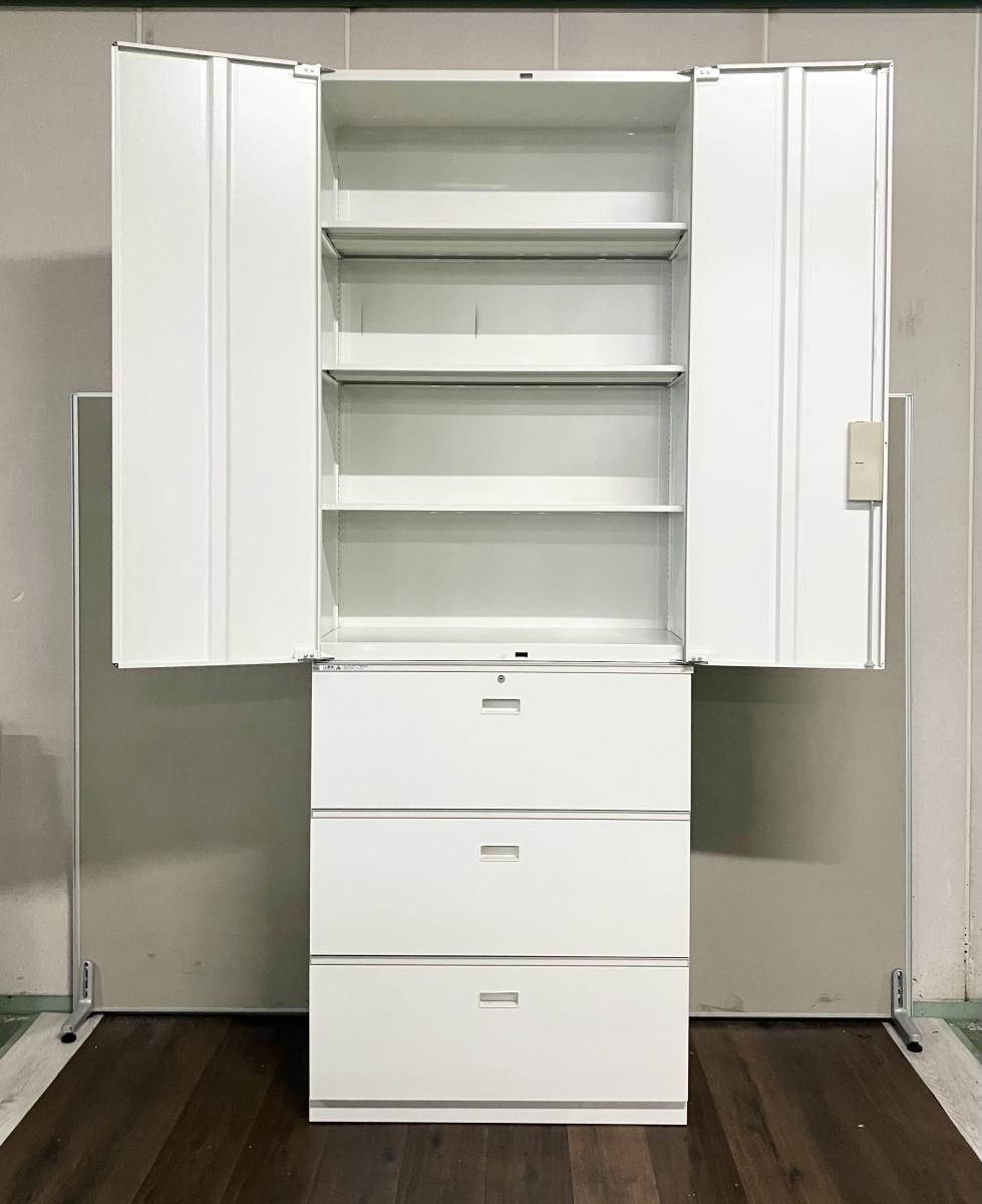 【少し特殊な上下書庫が入荷!!】 シンライン HTM-149HVS-W9、HTM-109AAS-W9 イトーキ/ITOKI ハイキャビネット/両開き+3段ラテラル 〈CS在庫〉 〈愛知、岐阜、三重、静岡、長野、福井、石川〉在庫がある店舗一覧