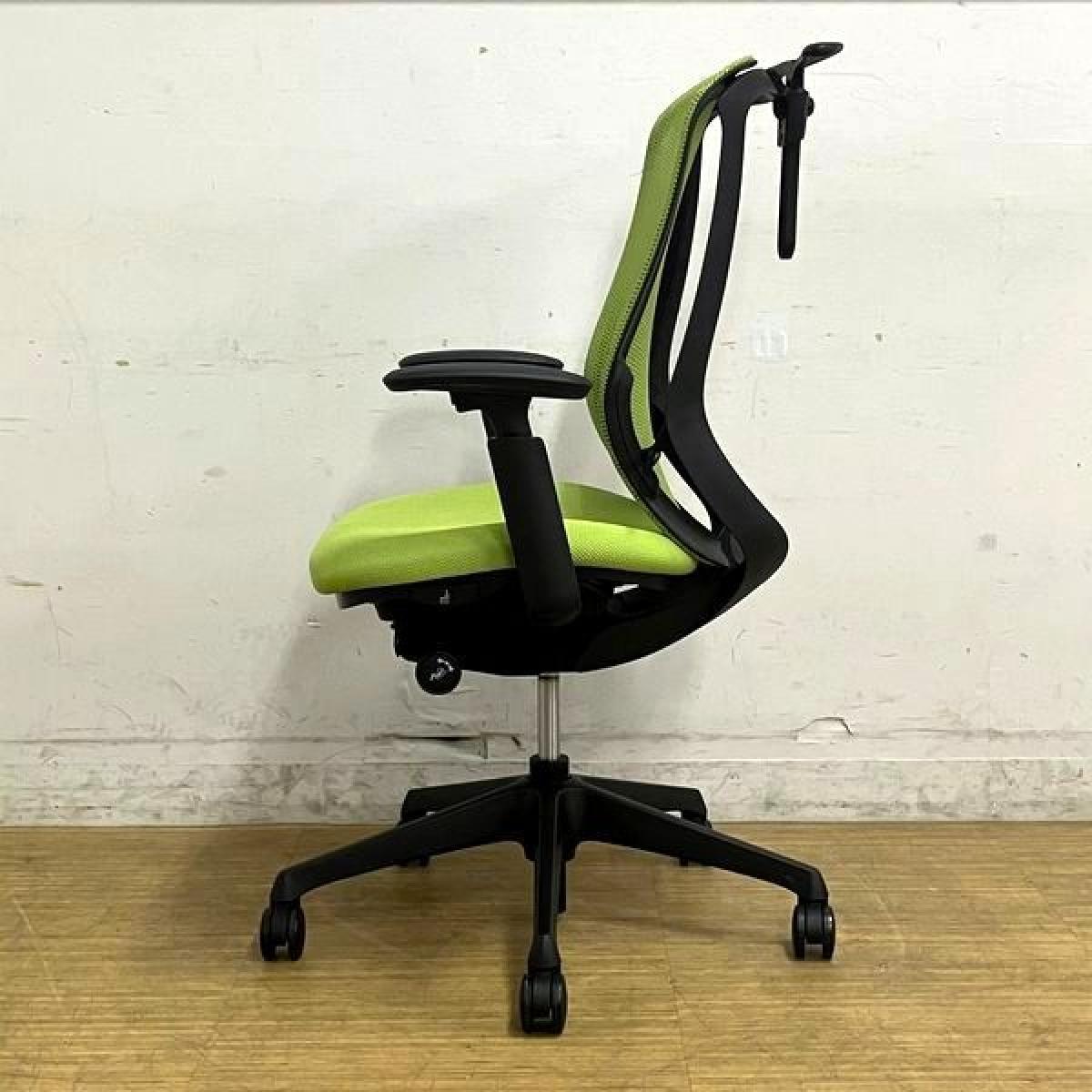 【2022年製】オカムラ シルフィーチェア ハイバック(メッシュ) アジャストアーム ライムグリーン×ブラック コートハンガー付き 前傾機能搭載でデスクワークが快適に- 名古屋千種店