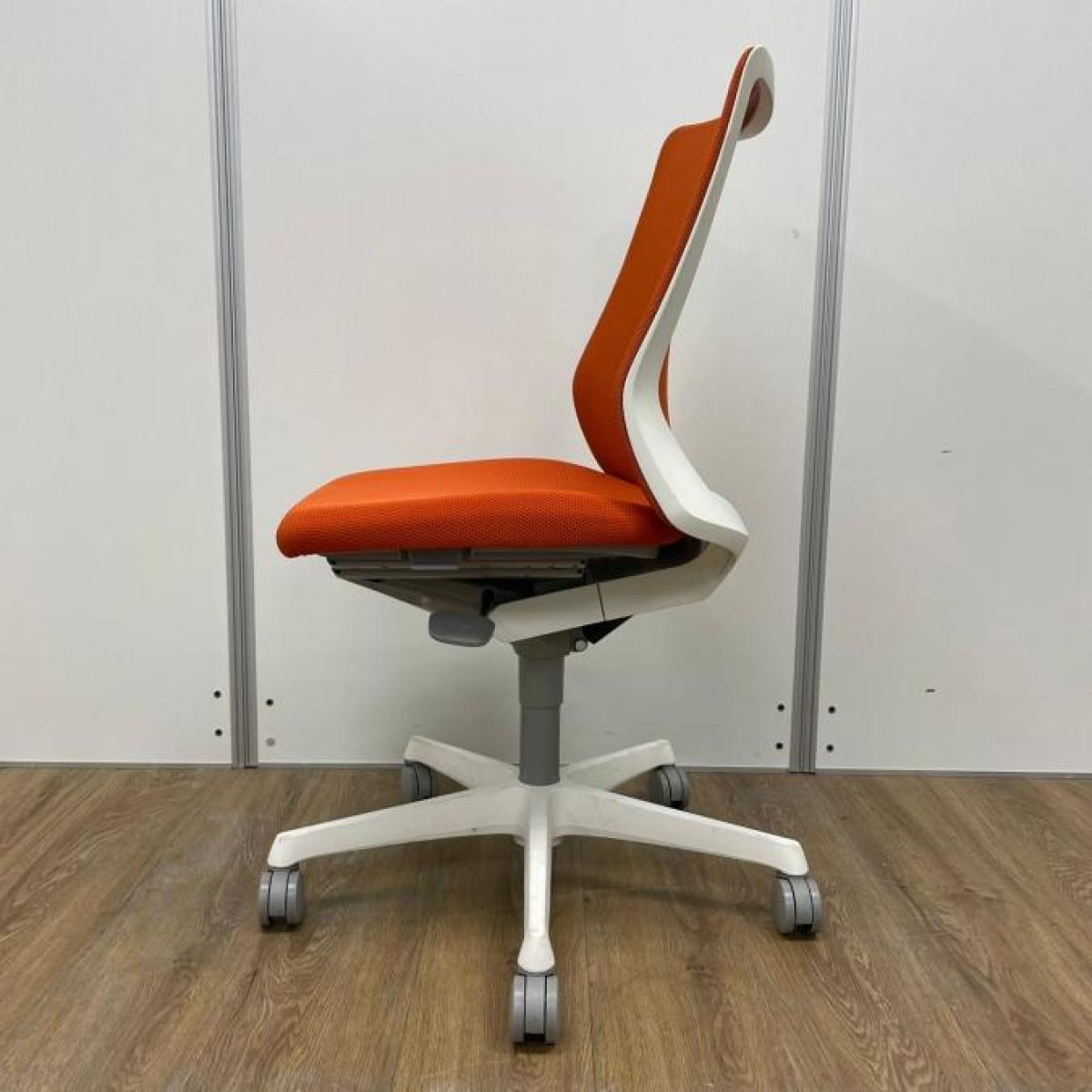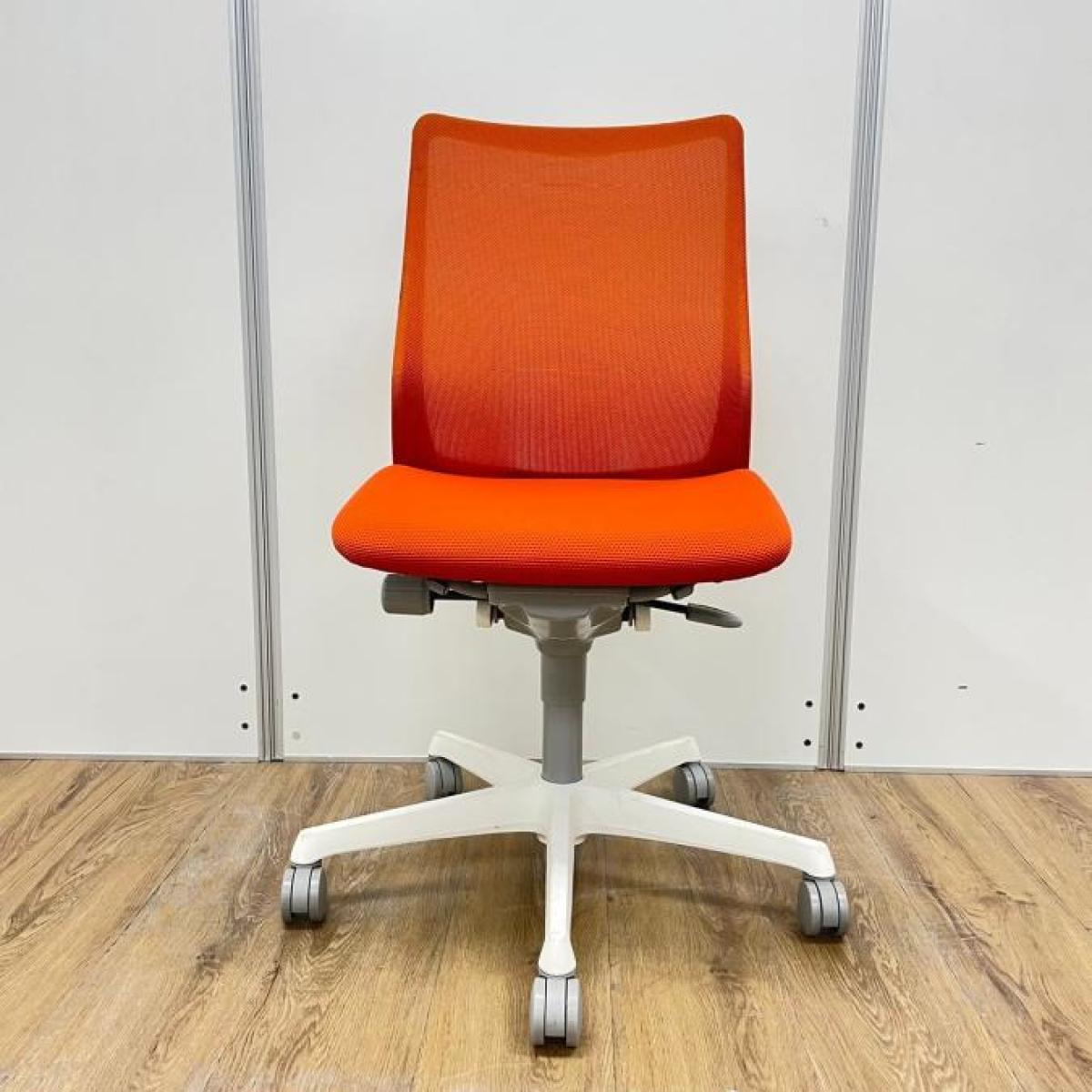 オカムラ製 フルーエント(Fluent) オレンジレッド ホワイトフレーム 肘無し ローバック 背面メッシュ 背中を立体的に包み込む! シルフィの座り心地を低コストで再現! 肘無しローバックチェア!!