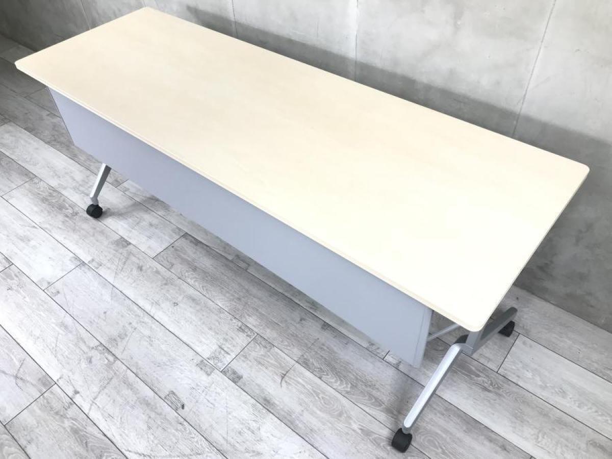【2024年製!綺麗な状態です!】コクヨ リーフライン サイドスタックテーブル 木目ナチュラル 幕板あり 会議机 収納 折り畳みテーブル セミナー用 福岡 中古家具 安い 九州最大級《オフィスバスターズ福岡博多店は、福岡を拠点として、日本全国へ中古オフィス用品・オフィス家具を提供しております》