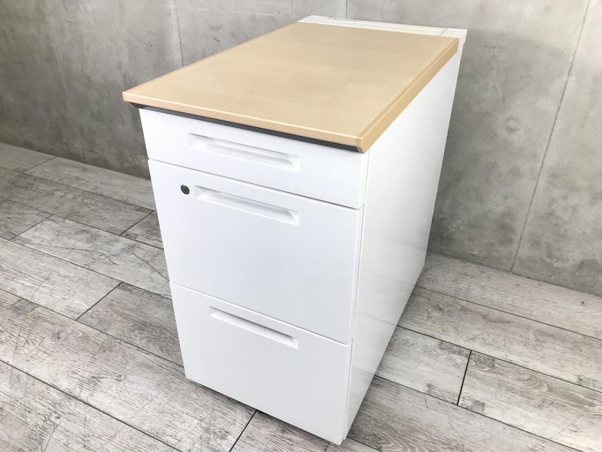 【在庫セール品・8台限定】■コクヨ(KOKUYO) iS(アイエス)シリーズ 3段脇机 ■W400×D700×H720㎜ ■ホワイト/天板:木目ナチュラル ■シリンダー錠【収納と作業スペースを同時に確保!フリアドデスクや平机のお供に!】