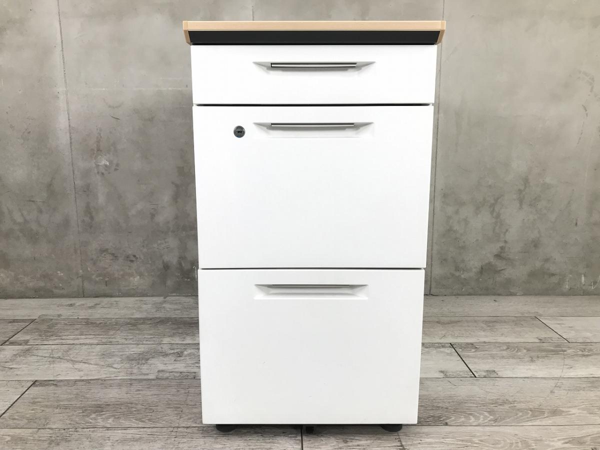 【収納と作業スペースを同時に確保!フリアドデスクや平机のお供に!】■コクヨ(KOKUYO)製 アイエス(iS)シリーズ 3段脇机 ■W400×D700×H720㎜ ■本体:ホワイト 天板:木目ナチュラル ■シリンダー錠【2506】弊社使用欄【A01022396】- 埼玉本店
