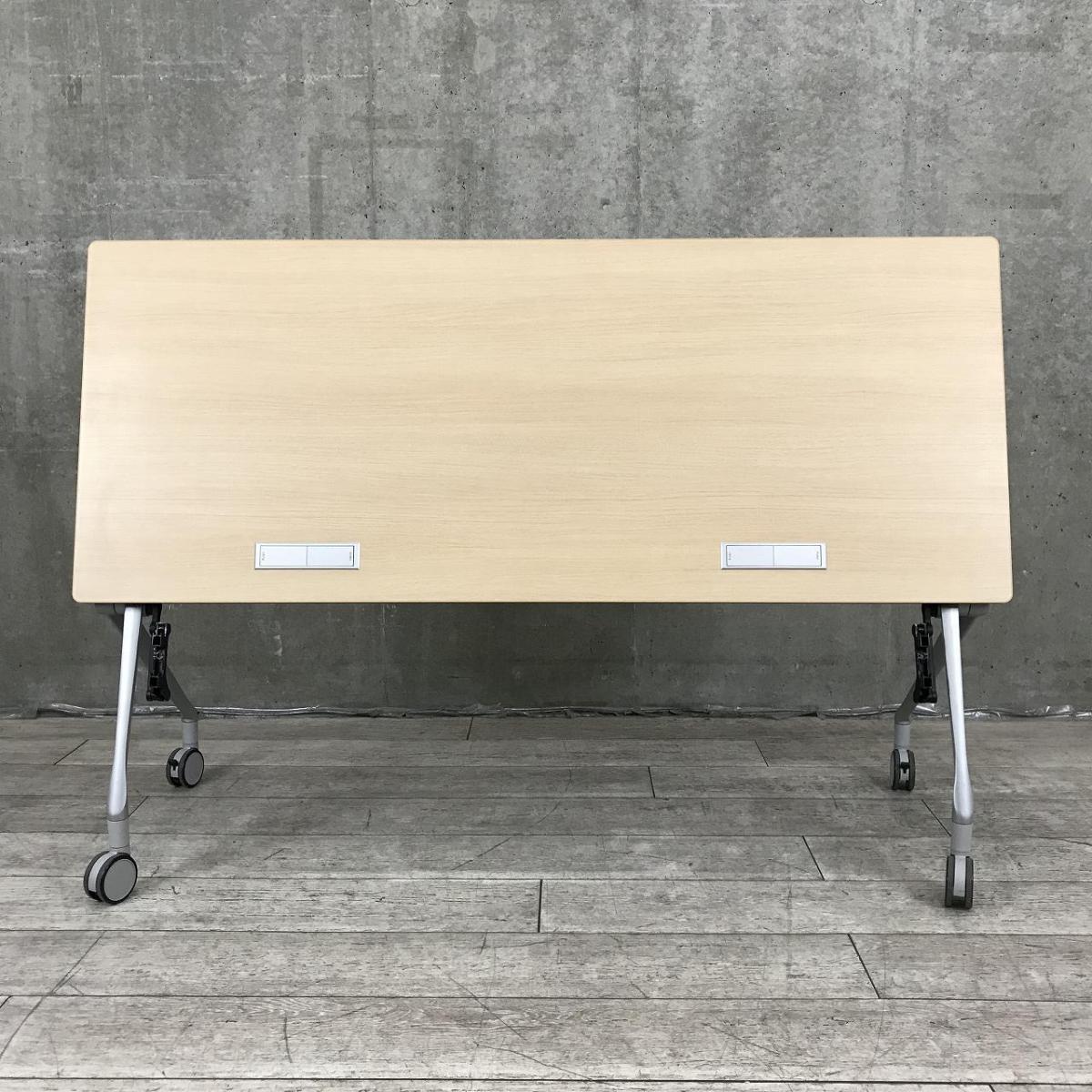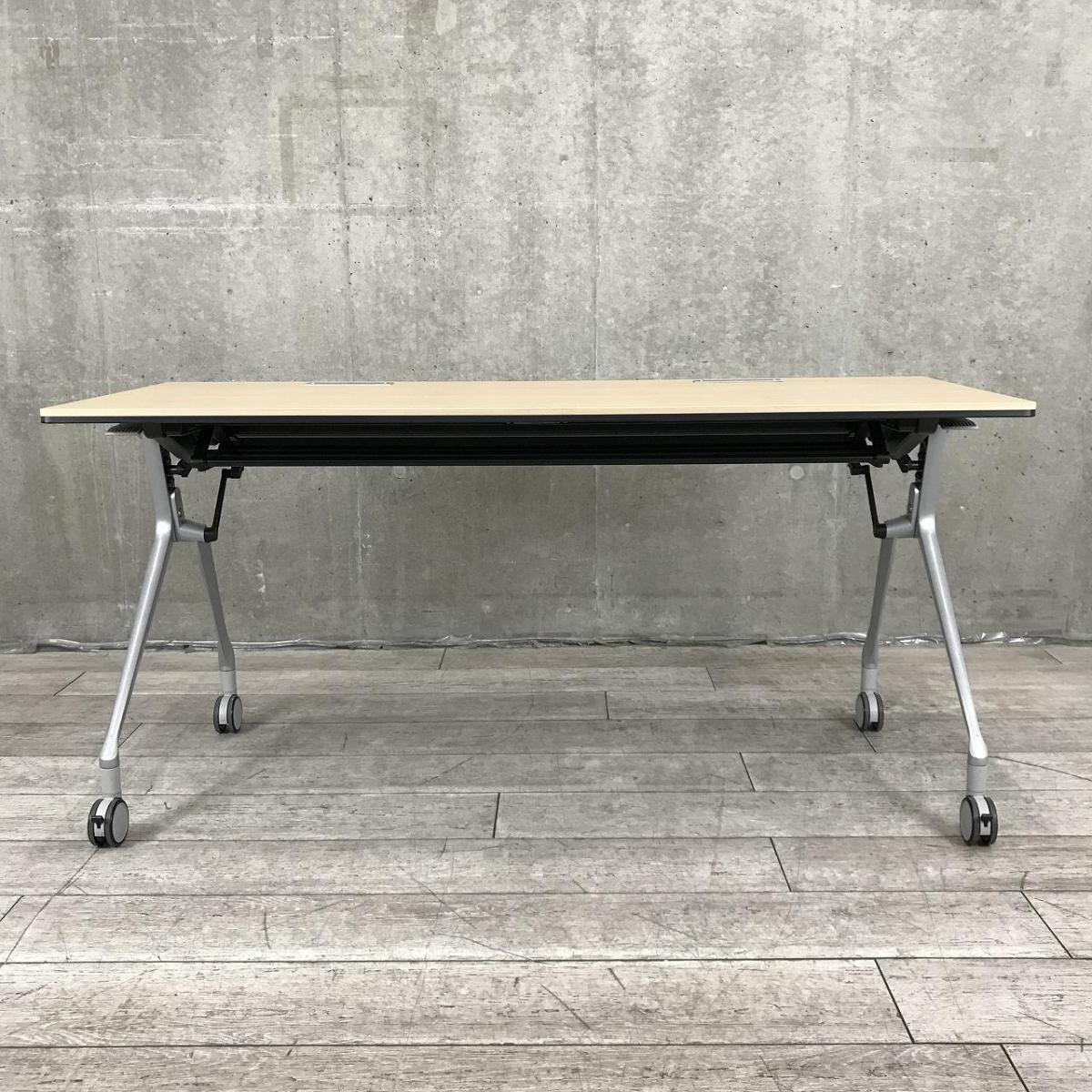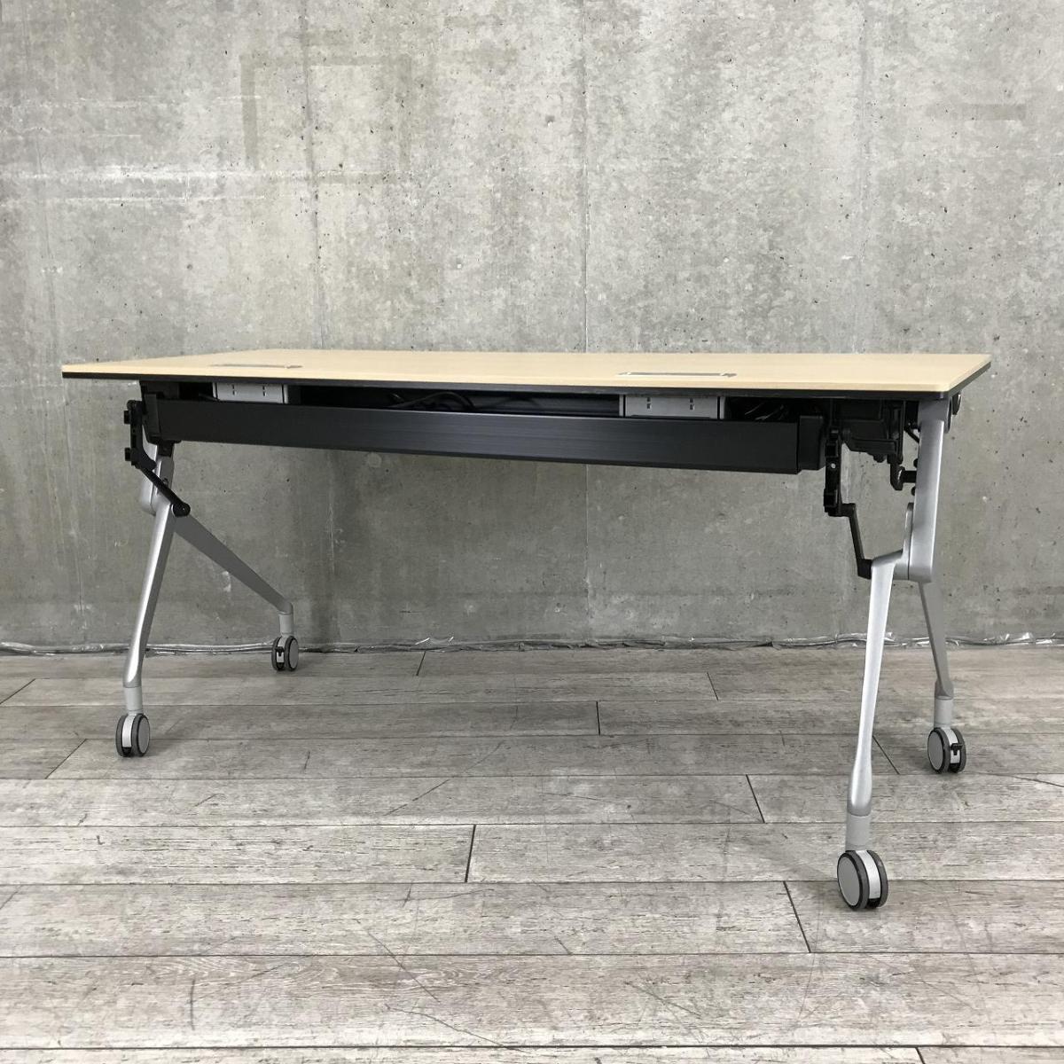 【折りたたみ収納が秀逸!スタイリッシュなデザインで高品質!】■オカムラ(okamura)製 インターアクトNT(INTER ACTNT) サイドスタックテーブル W1500×D600×H720mm ■キャスター付 ■コンセント付き ■木目調ナチュラル天板【2506】弊社使用欄【A01021208】- 埼玉本店