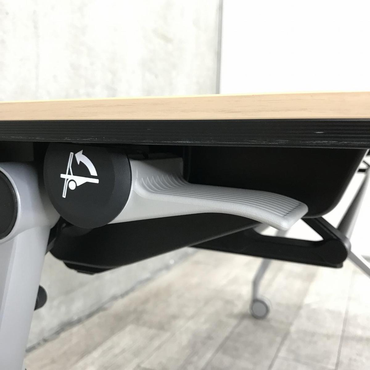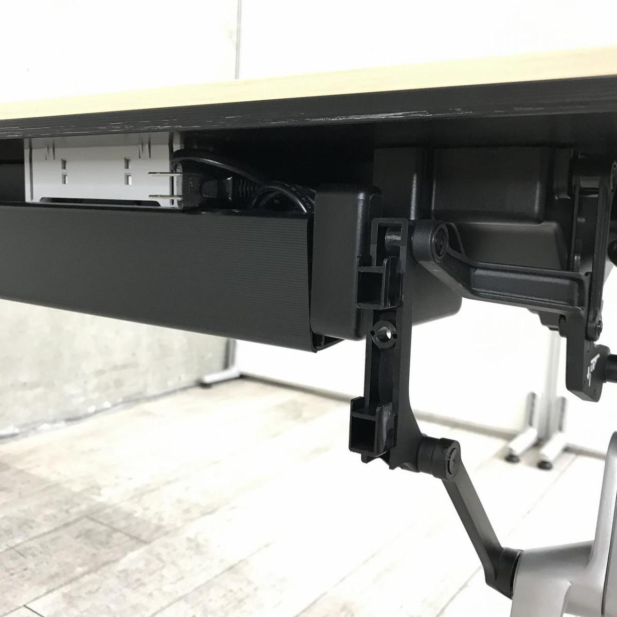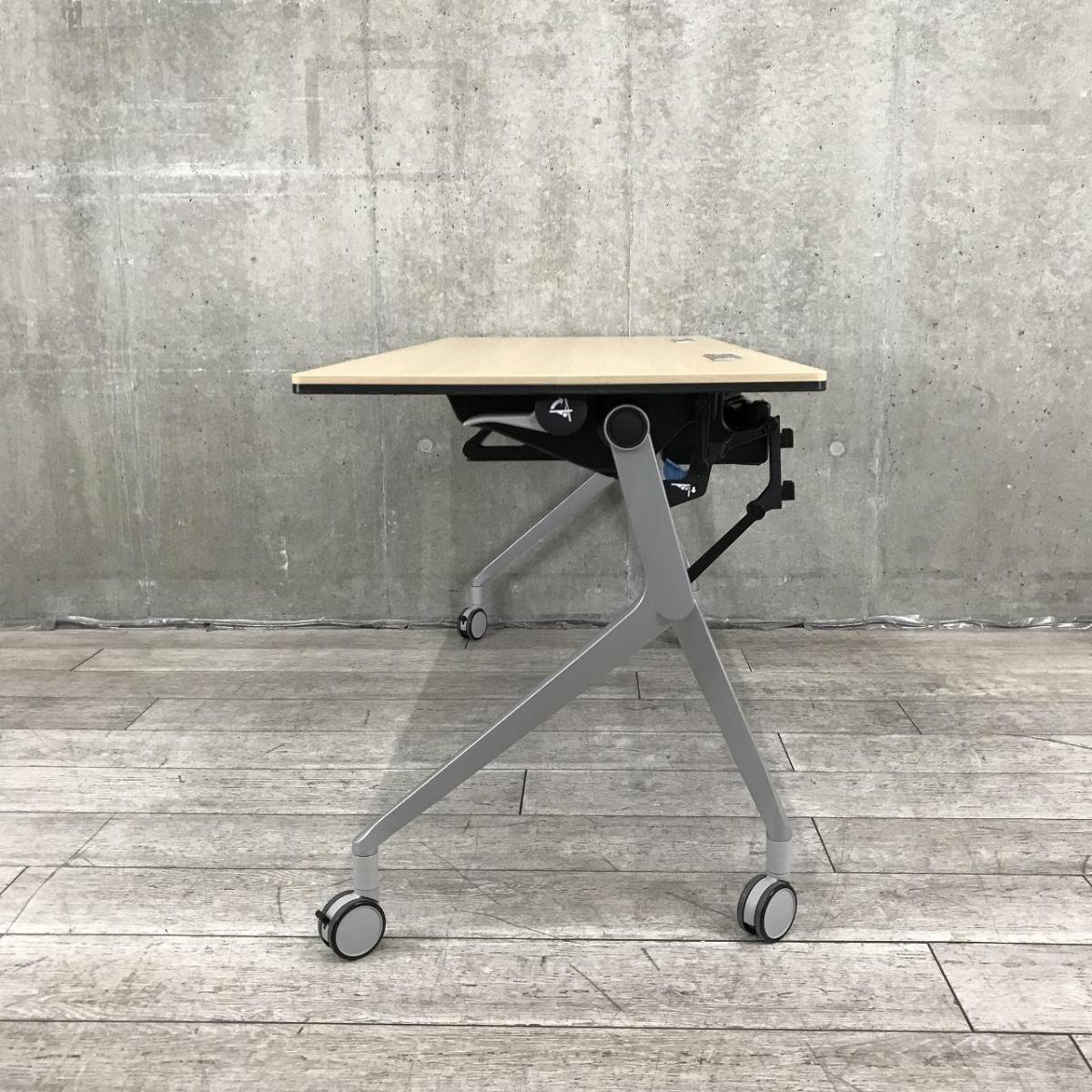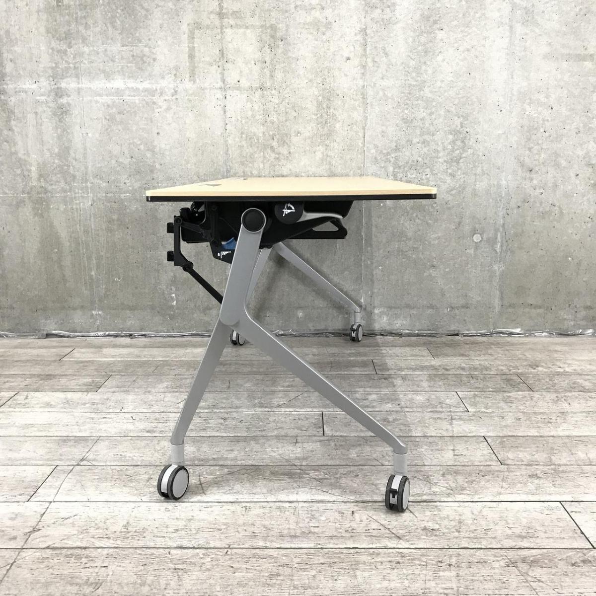 【折りたたみ収納が秀逸!スタイリッシュなデザインで高品質!】■オカムラ(okamura)製 インターアクトNT(INTER ACTNT) サイドスタックテーブル W1500×D600×H720mm ■キャスター付 ■コンセント付き ■木目調ナチュラル天板【2506】弊社使用欄【A01021208】- 埼玉本店