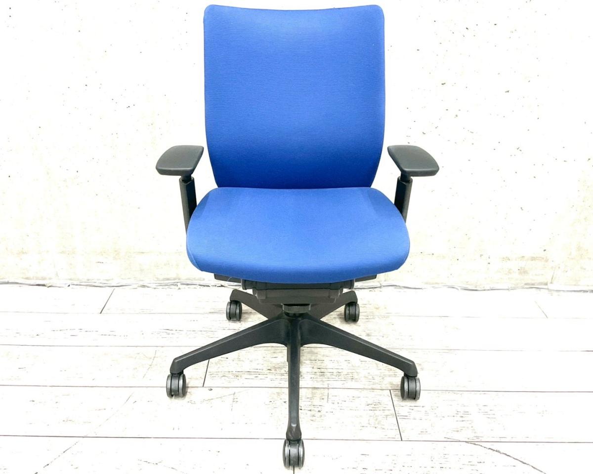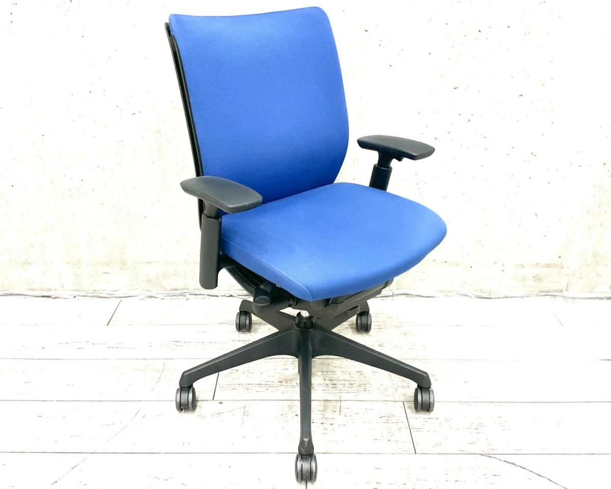 オカムラ ヴィスコンテ ローバックモデル アジャストアーム(可動肘)ブルー 背クッション スタンダードタイプ