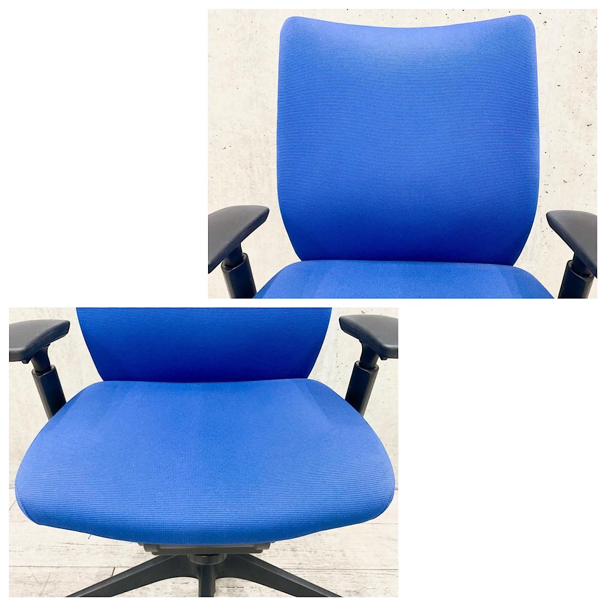 【2020年製】オカムラ ヴィスコンテ ローバックモデル デザインアーム(固定肘) ブルー 背クッション スタンダードタイプ